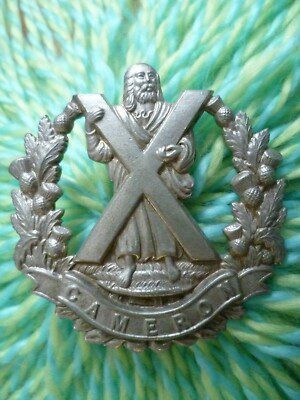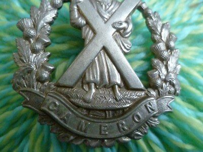 Seller note: Cameron Highland Cap Badge Silver Slider Antique Original Rare (Size approximately 57 mm X 55 mm ) I believe this to be an Original badge, in very good condition but showing genuine signs of age...UNMARKED SILVER...Please study pictures carefully to decide