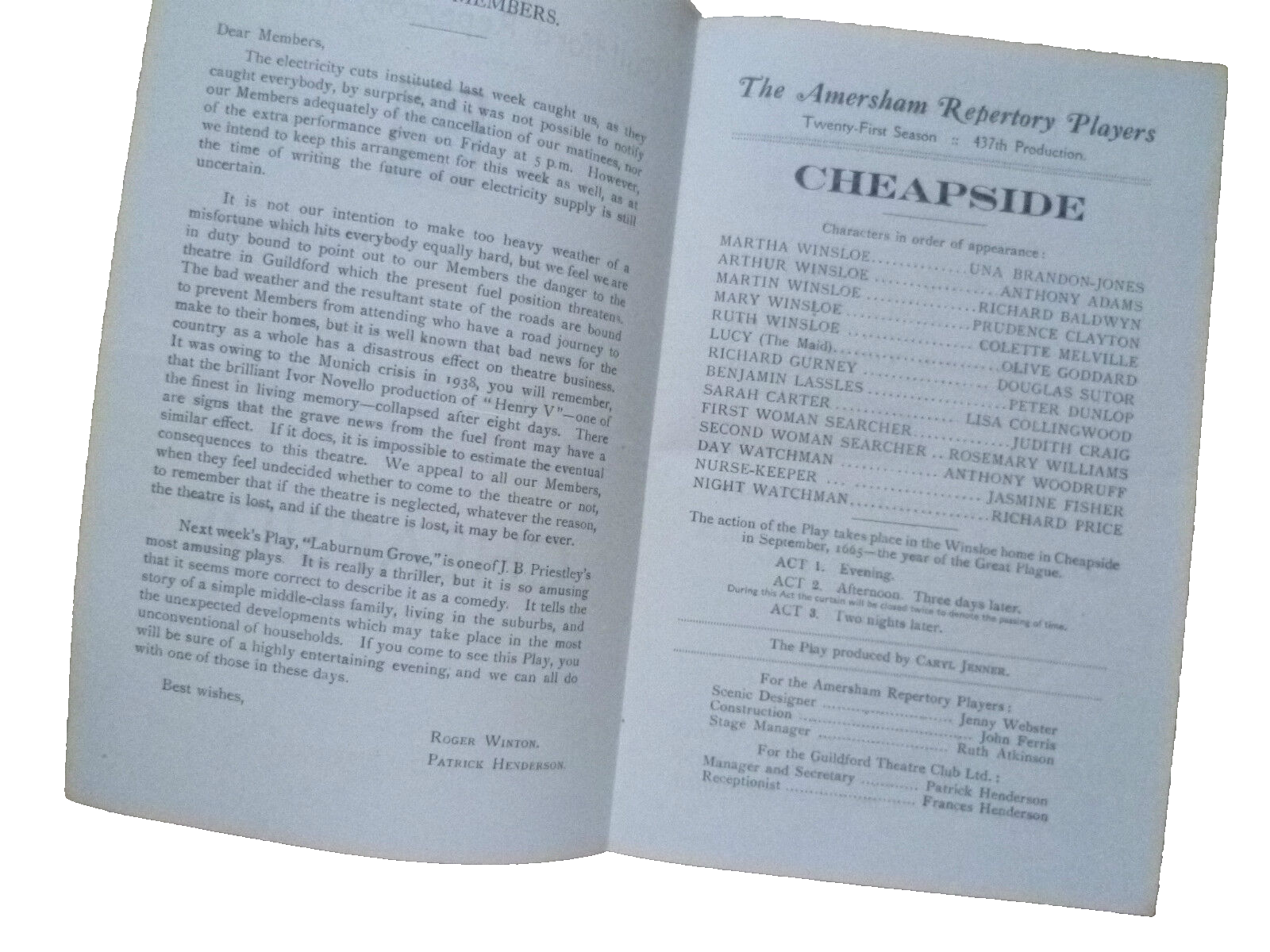 You are purchasing very collectable &original pogramme of: Guildford Repertory Theatre 1947- CHEAPSIDE by James Parish