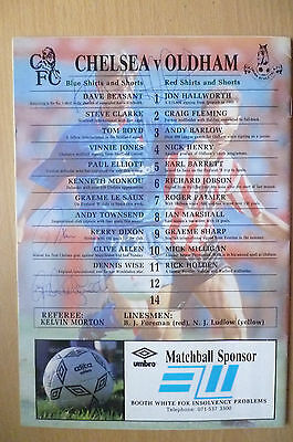 CHELSEA v OLDHAM ATHLETIC,21 Dec,Hand Signed by Neville Ovenden,K Dixon & Others