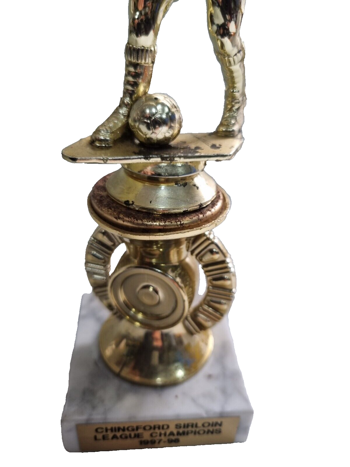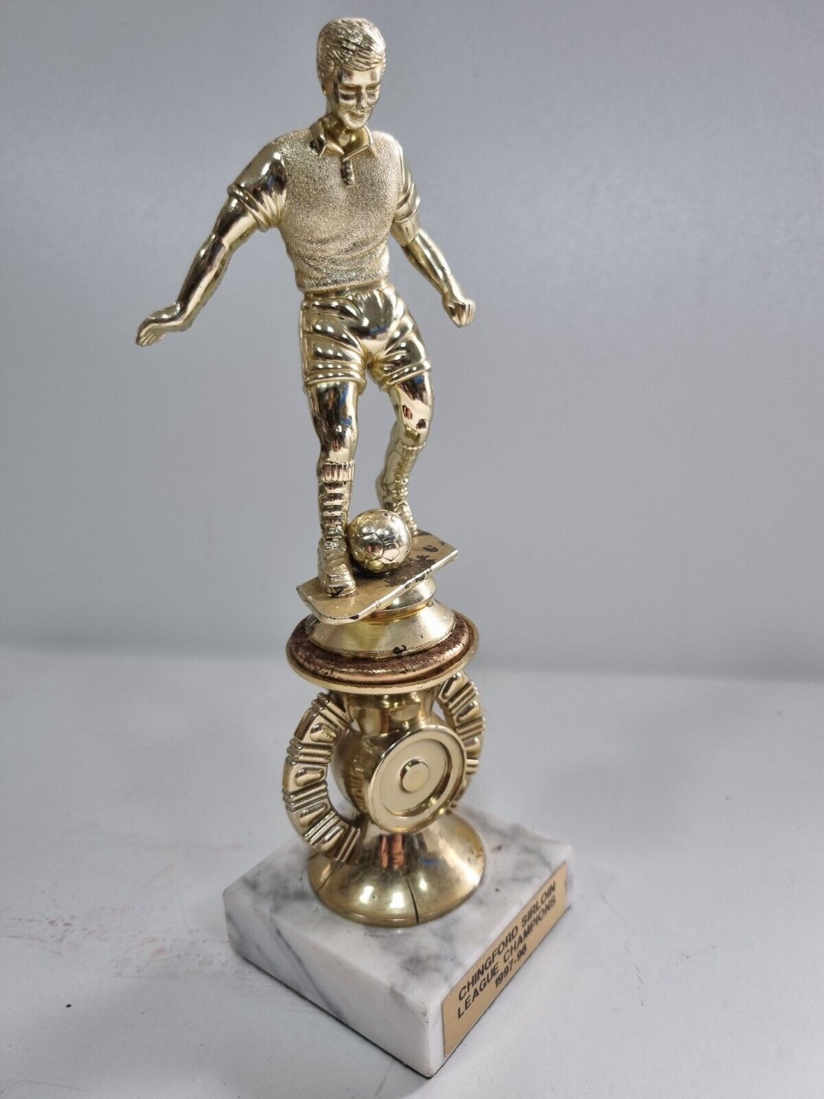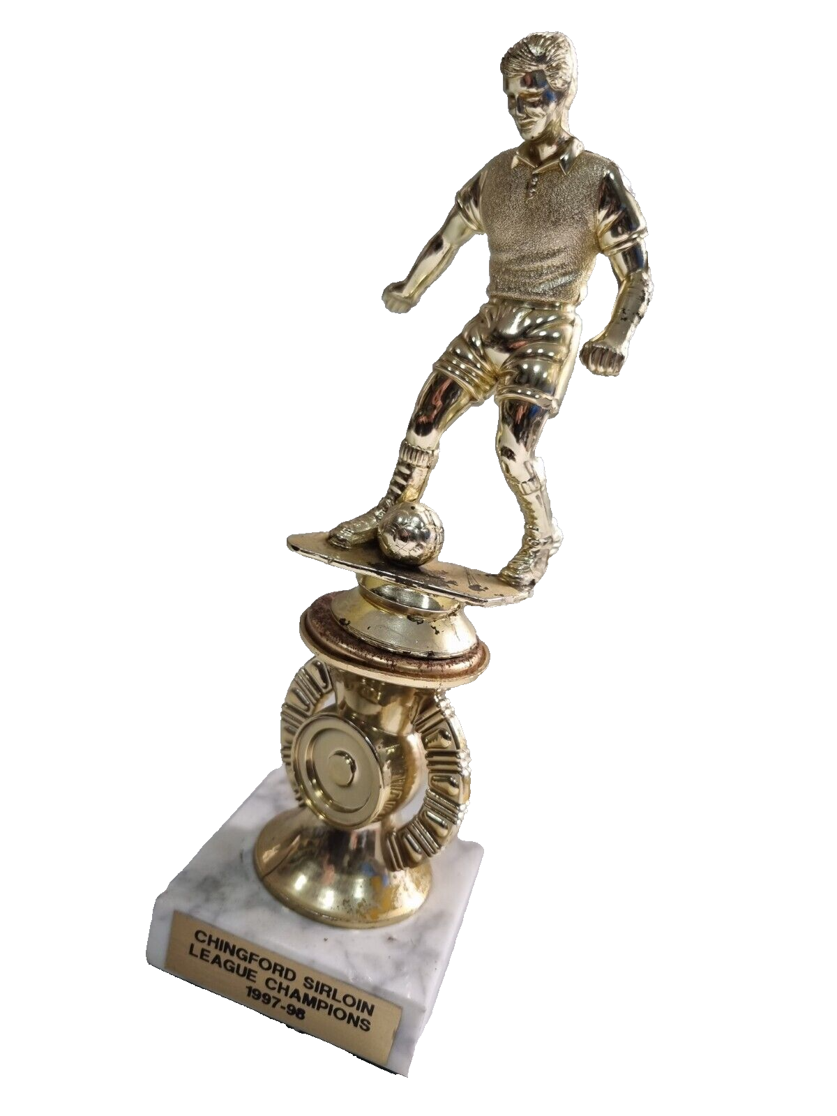 Seller note: On offer for sale is Chingford Sirloin League Champions 1997/98 Trophy on Marble Base. Size approximately 21.5 cm x 4.5cm This Trophy has rusted a little where the ball is based, otherwise remains in good condition but showing genuine signs of age... Please study pictures carefully to decide.