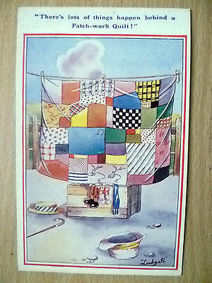 You are purchasing: Comic Postcard- THere’s Lots of Things Happen Behind a Patch Work Quilt ! No. 1126