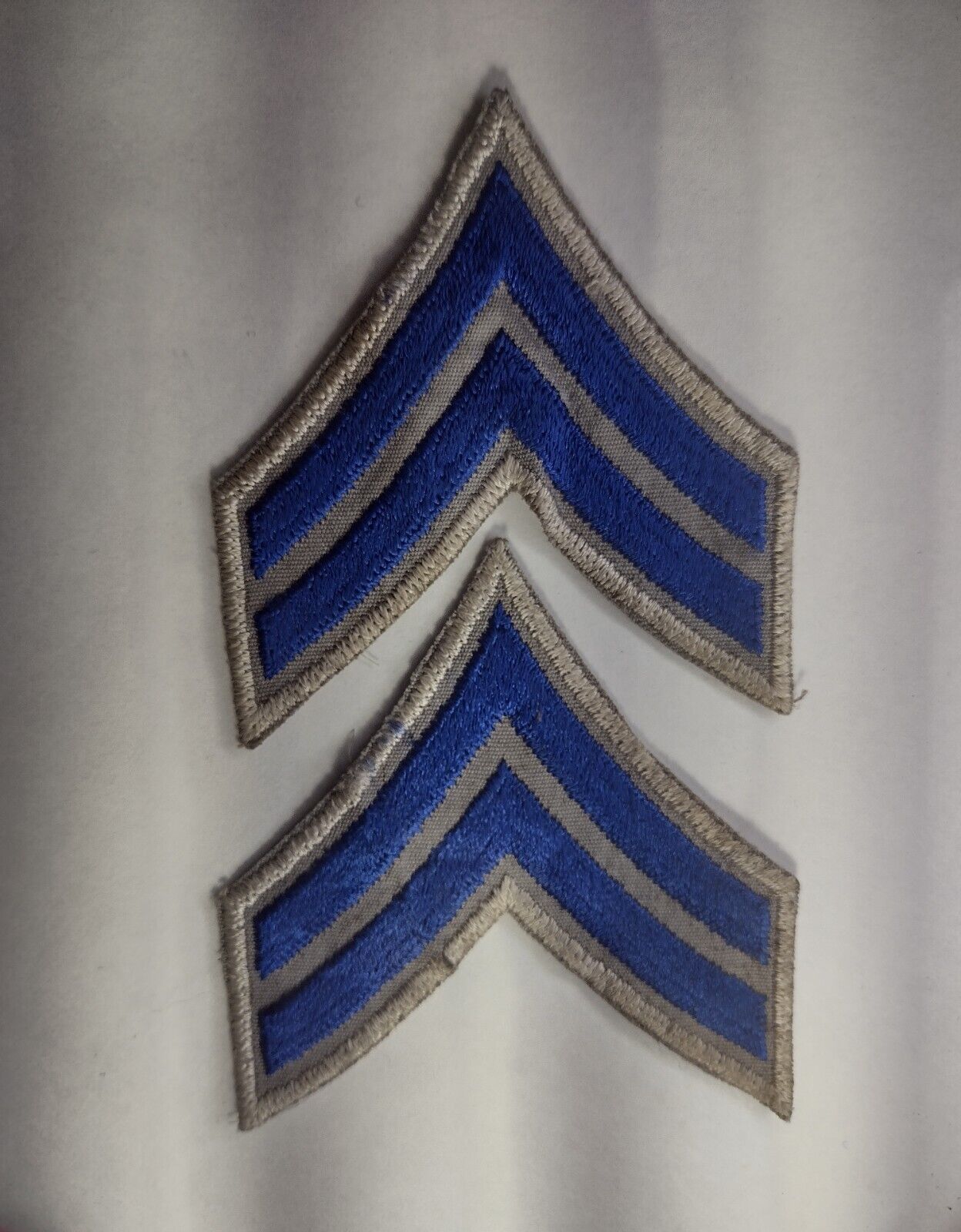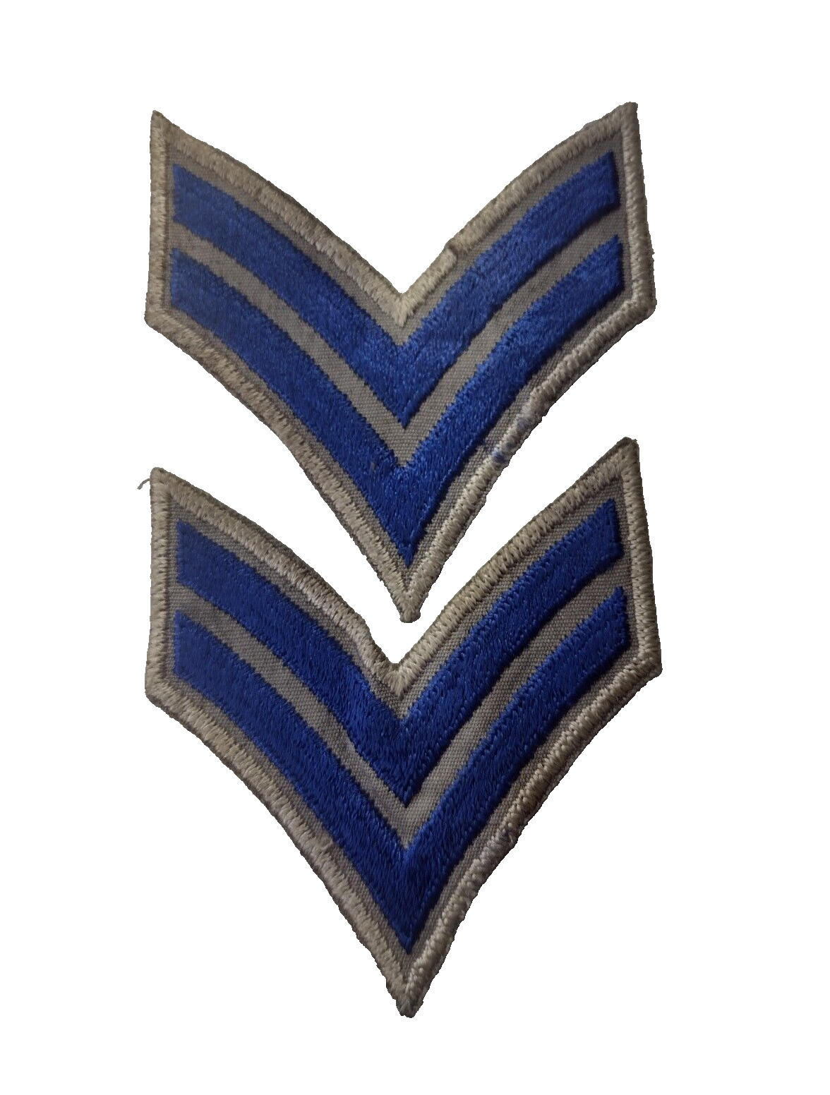 Corporal Chevron Rank Patch Blue 2 Chevrons on Silver Outline Used Pair 48x75mm