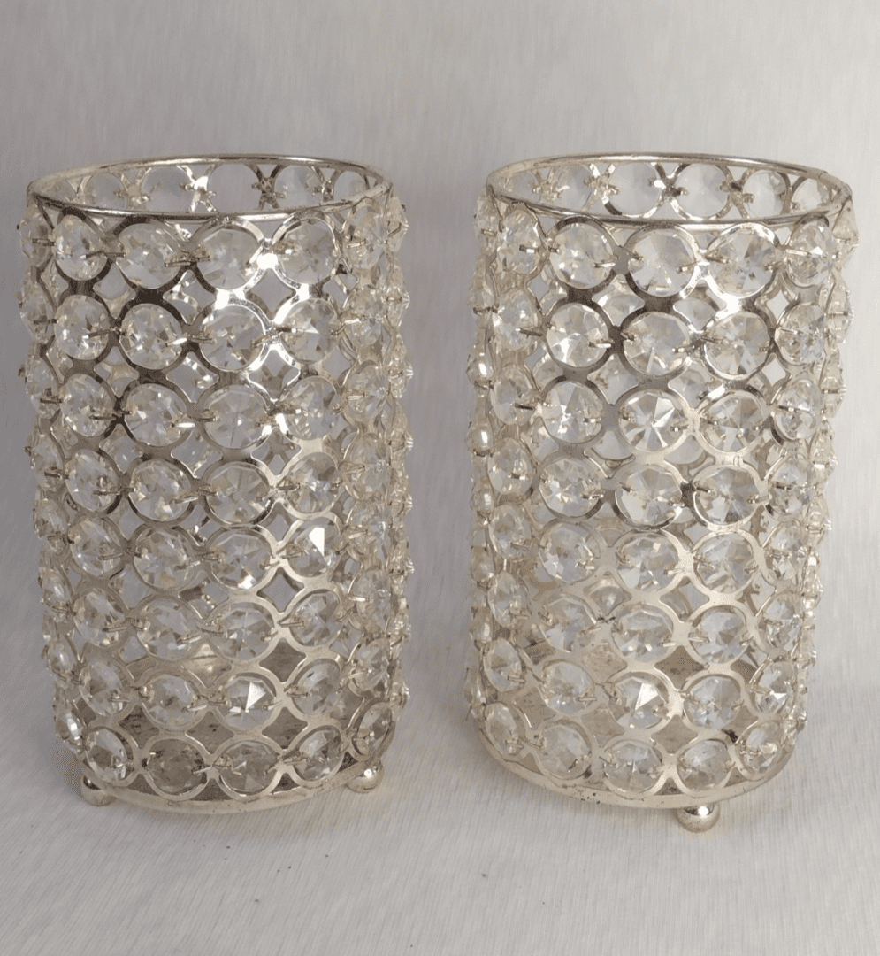 Be the first to review “Crystal Candle Holders Silver Glass Crystal Beaded Hurricane 17.5cm Pair Vintage” Cancel reply
