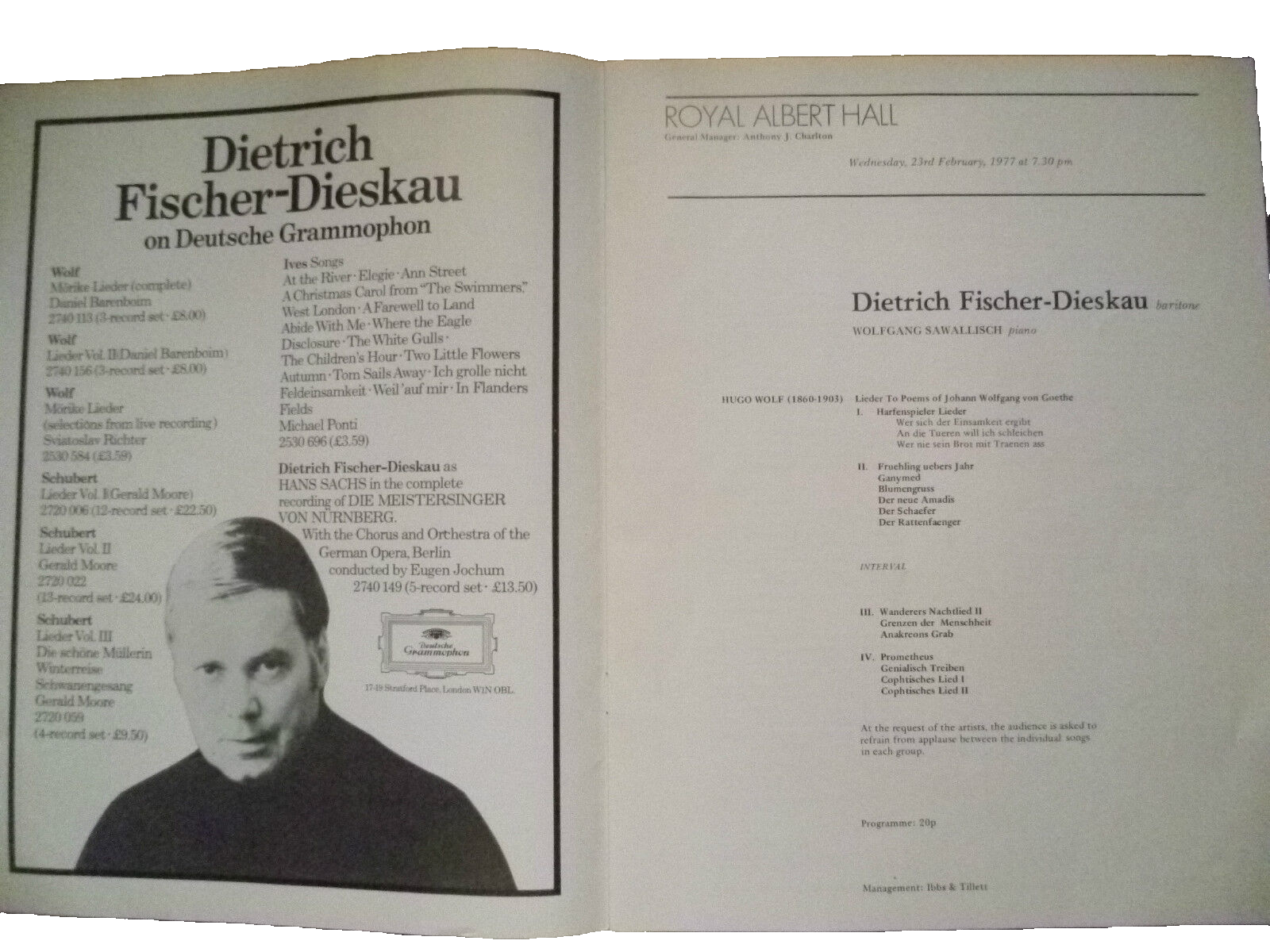Dietrich Fischer Dieskau With Wolfgang Sawallisch 1977 Concert Programme