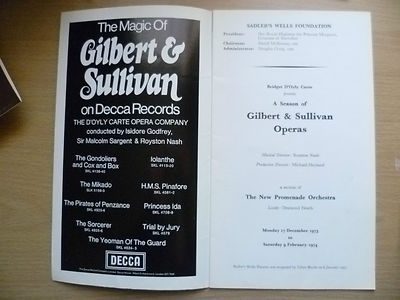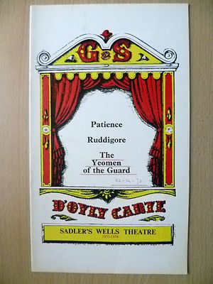 You are purchasing vintage & original programme of : D’Oyly Carte GILBERT & SULLIVAN OPERAS 1972- Multiple Operas @ Sadler’s Wells Theatre