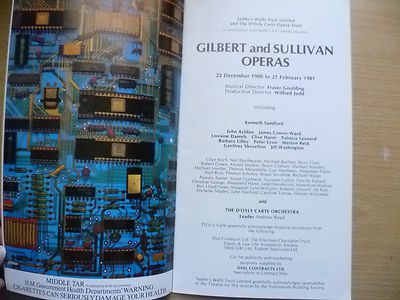 You are purchasing vintage & original programme of : D’Oyly Carte GILBERT & SULLIVAN OPERAS 1981- HMS PINAFORE & THE YEOMEN OF THE GUARD ~ Sadler’s Wells Theatre