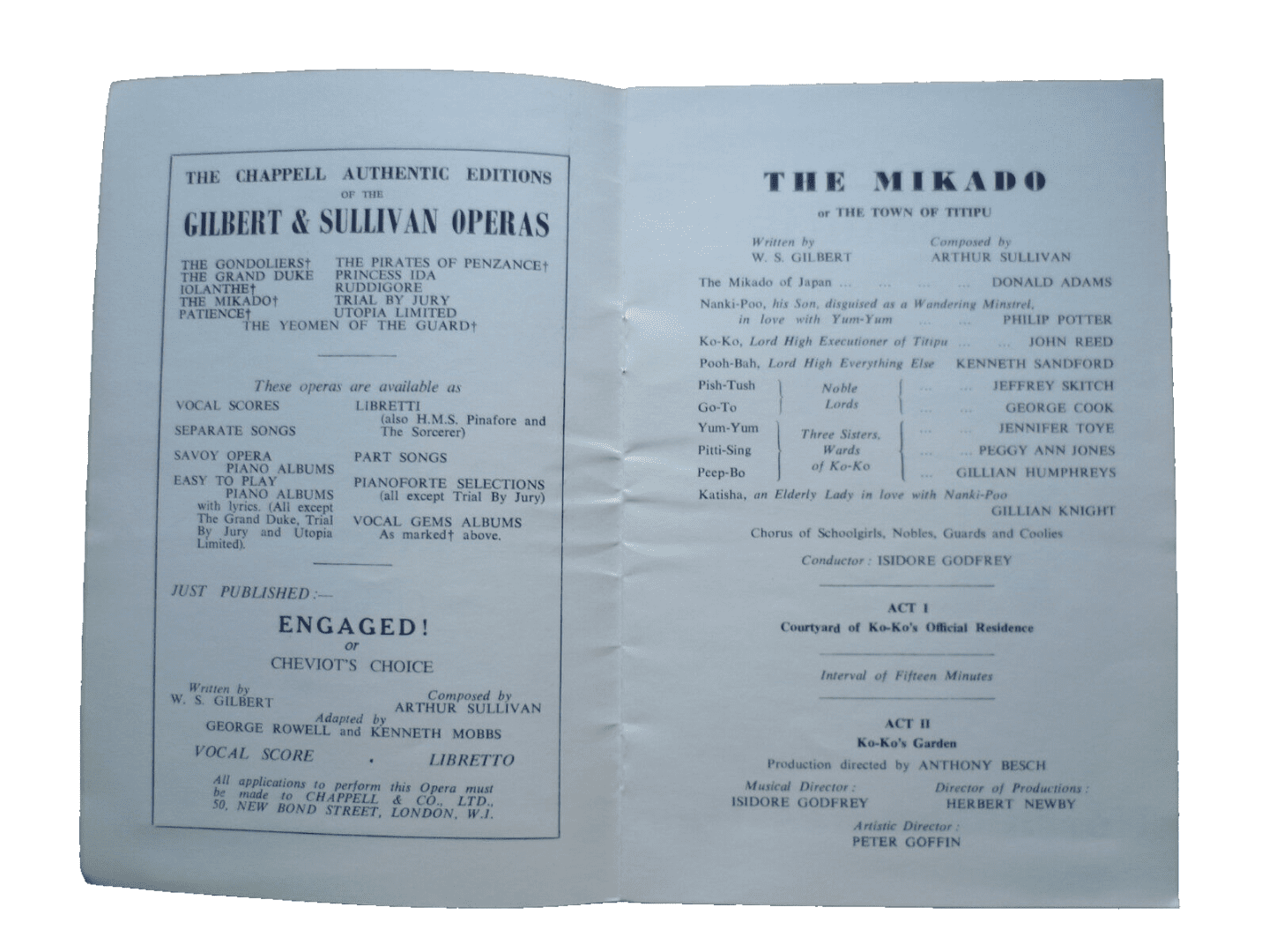You are purchasing old an original vintage- D’Oyly Carte’s GILBERT & SULLIVAN OPERA-THE MIKADO by W S Gilbert: Savoy Theatre 1963-1964