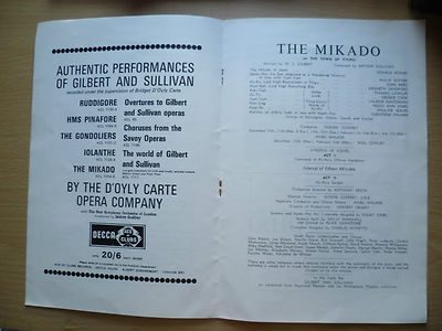 You are purchasing old an original vintage- D’Oyly Carte’s GILBERT & SULLIVAN OPERA 1965-66 Season-THE MIKADO at Saville