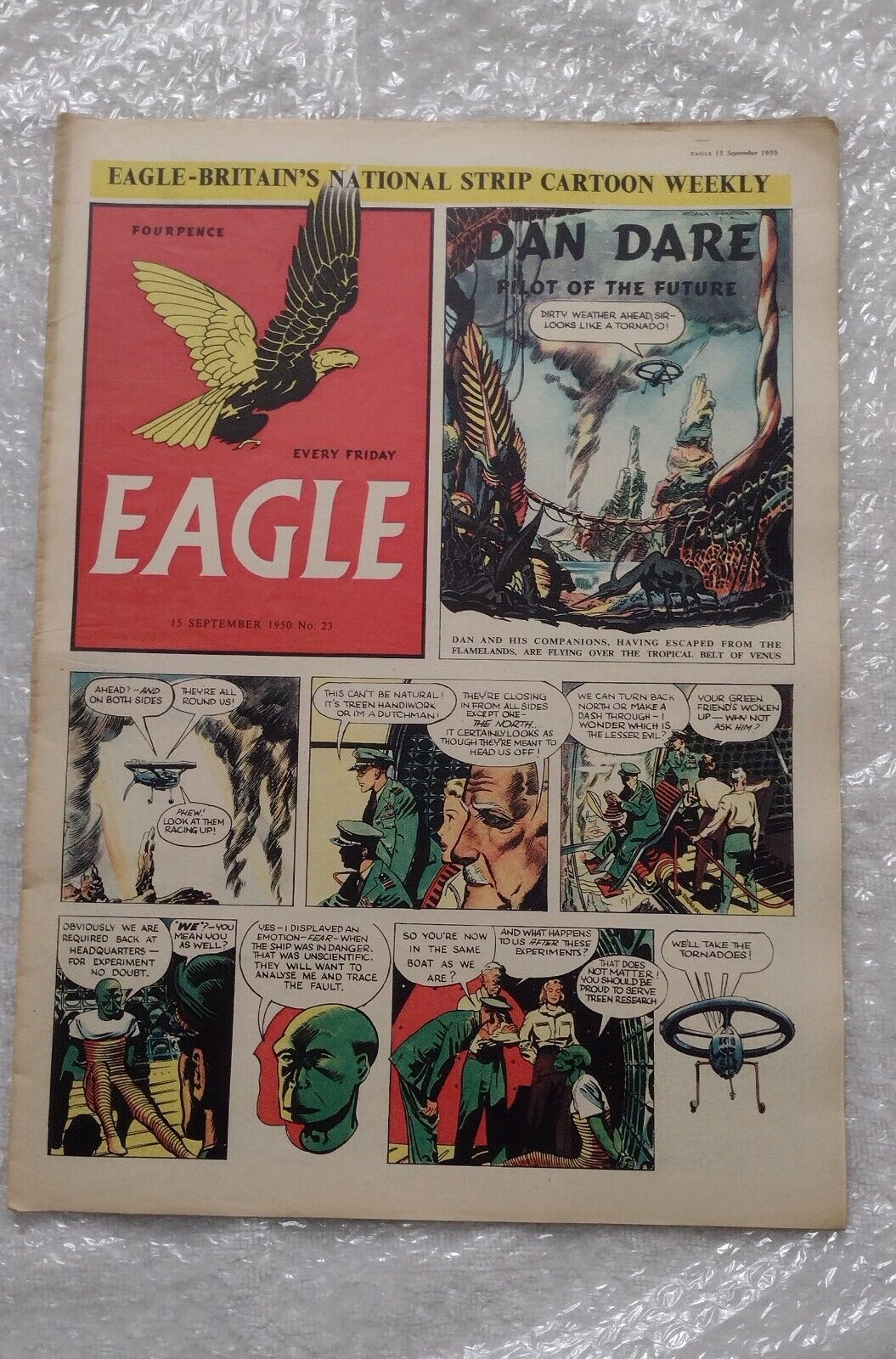 Eagle was a British children’s comics periodical, first published from 1950 to 1969, and then in a relaunched format from 1982 to 1994. It was founded by Marcus Morris, an Anglican vicar from Lancashire. Morris edited a Southport parish magazine called The Anvil, but felt that the church was not communicating its message effectively. Simultaneously disillusioned with contemporary children’s literature, he and Anvil artist Frank Hampson created a dummy comic based on Christian values. Morris proposed the idea to several Fleet Street publishers, with little success, until Hulton Press took it on.