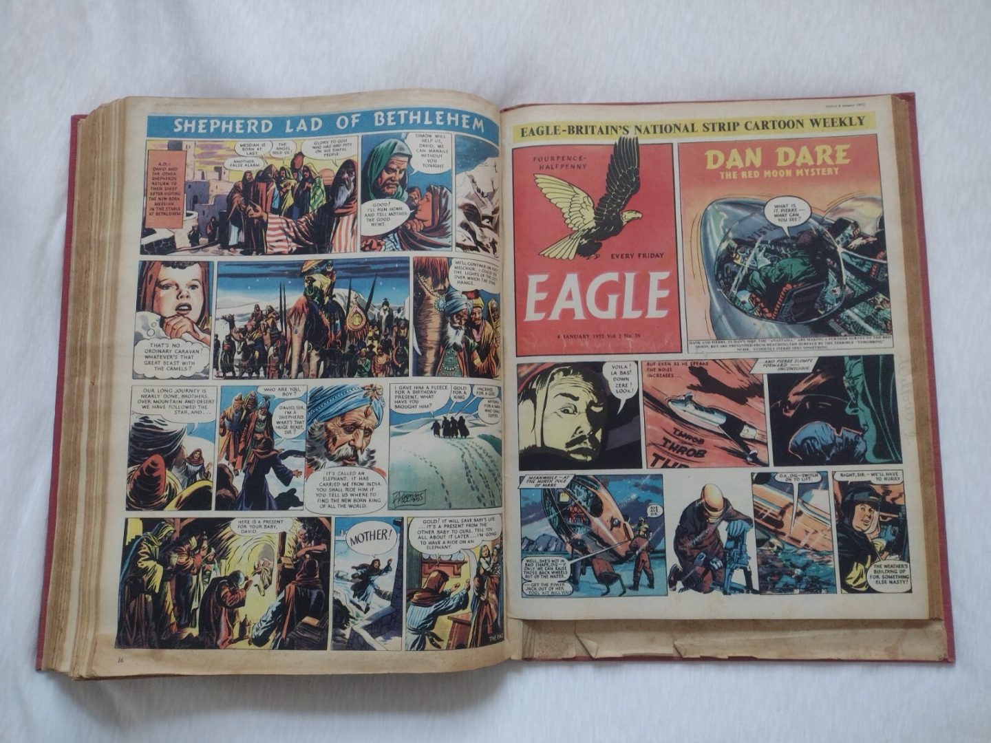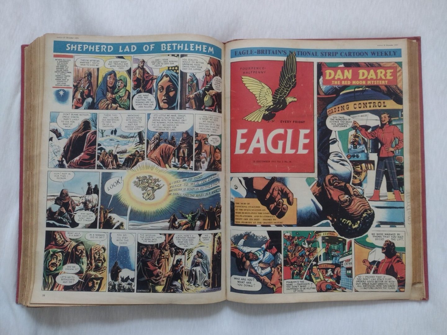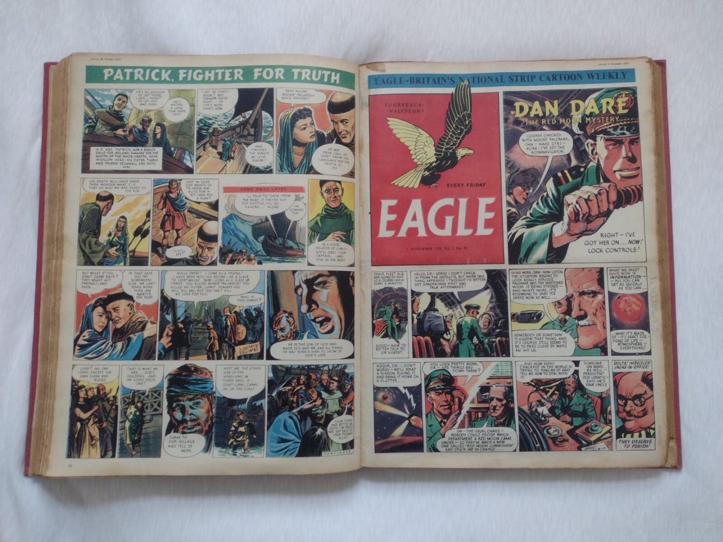 Eagle was a British children’s comics periodical, first published from 1950 to 1969, and then in a relaunched format from 1982 to 1994. It was founded by Marcus Morris, an Anglican vicar from Lancashire. Morris edited a Southport parish magazine called The Anvil, but felt that the church was not communicating its message effectively. Simultaneously disillusioned with contemporary children’s literature, he and Anvil artist Frank Hampson created a dummy comic based on Christian values. Morris proposed the idea to several Fleet Street publishers, with little success, until Hulton Press took it on.