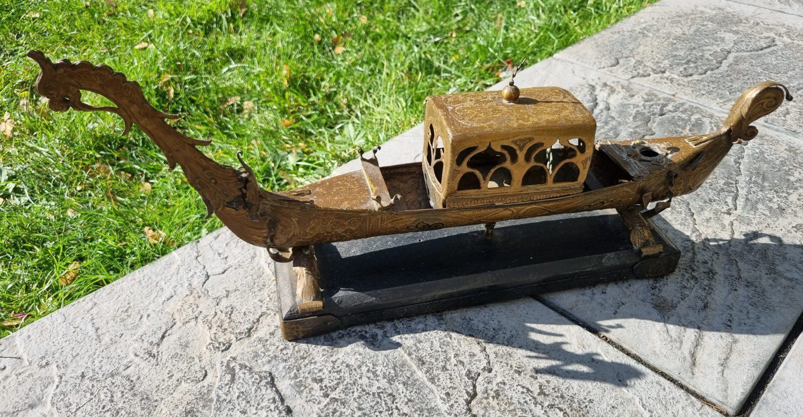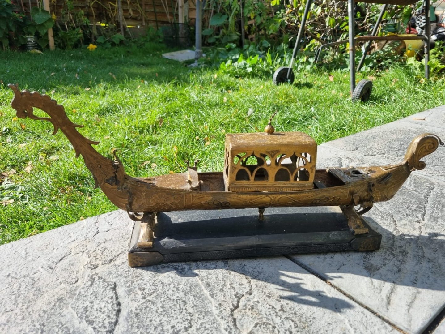 You are purchasing very collectable & Original item – On Sale is a very rare Antique item – Early 20th Century Chinese Dragon Rowing Boat Brass Hand Made 57cm Scared Original. Size approximately Boat length 57 cm x 23 cm and Stand length 35 cm x 10.5 cm. Made with solid brass and wood.