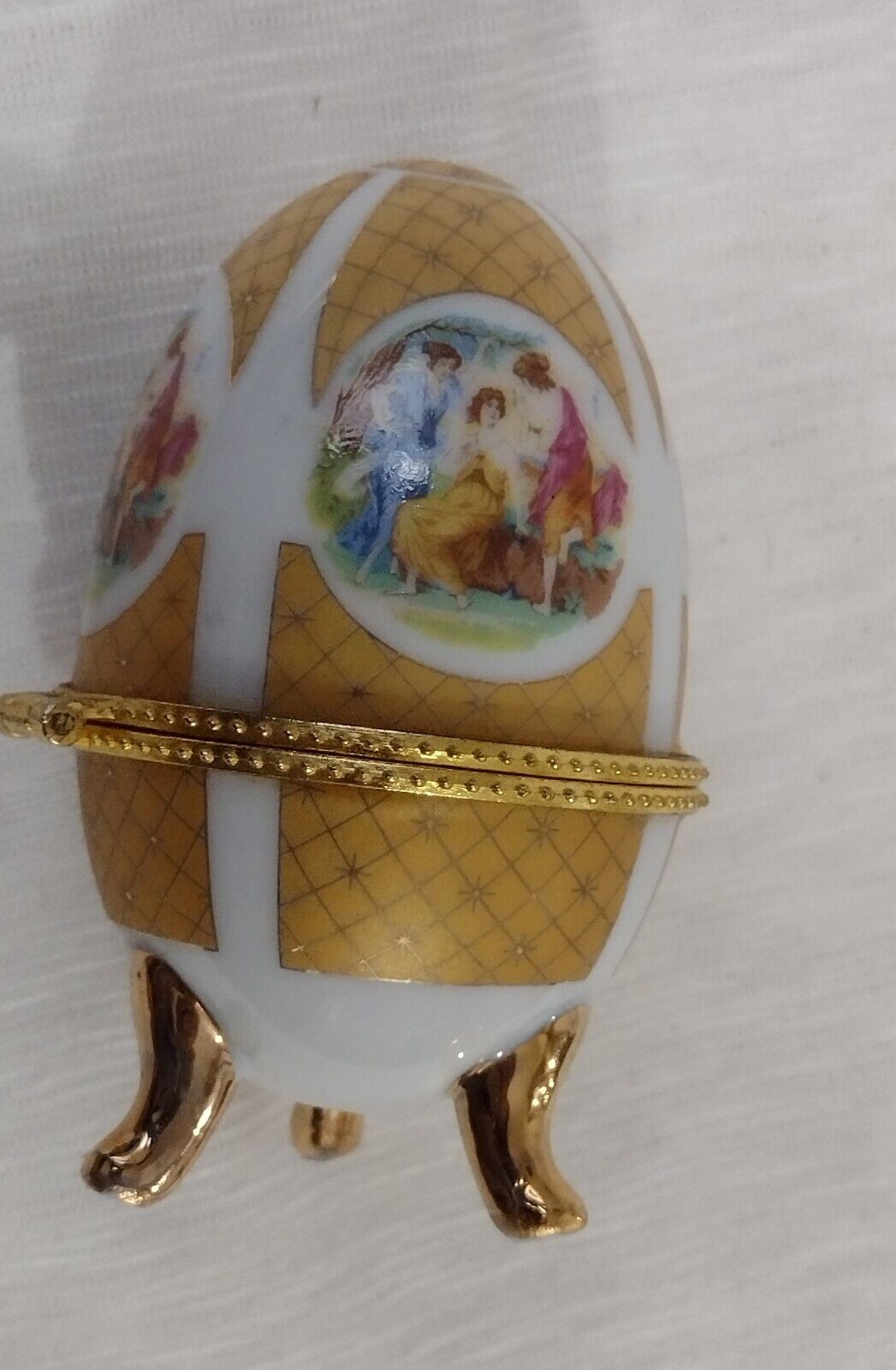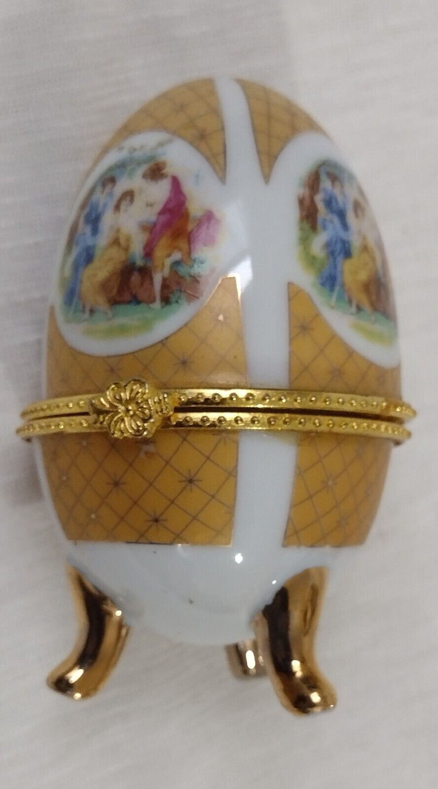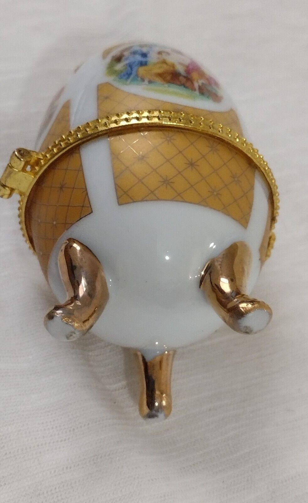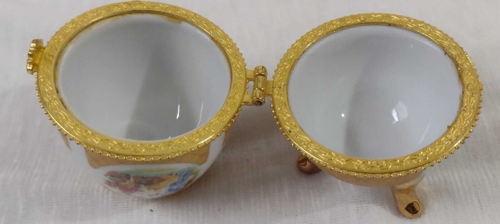 Egg Trinket Box Victorian Style Egg Trinket Box Golden Edge 8cm x 4.5cm Vintage