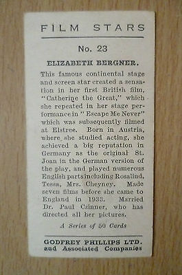ELIZABETH BERGNER- Godfrey Phillips Cigarette Cards- Film Stars, No.23