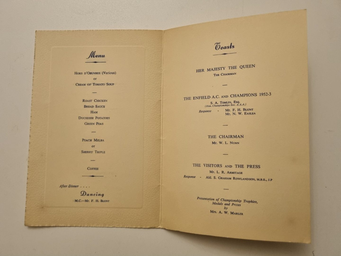 Enfield Athletic 25th Annual Dinner and Dance Menu – 24th January 1953