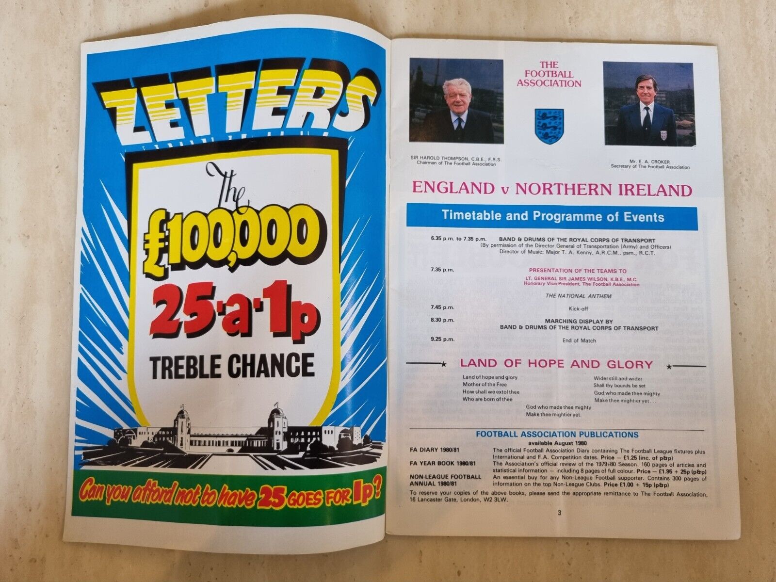 England v Northern Ireland British Championship – 20th May 1980