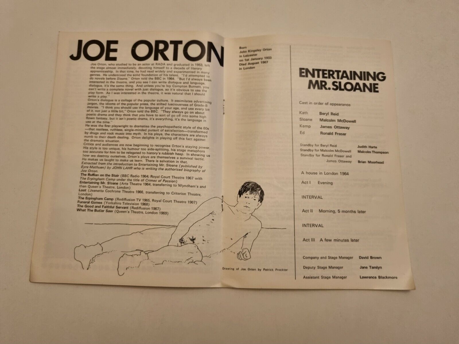 Entertaining Mr Sloane Macolm McDowell James Ottaway Ronald Fraser