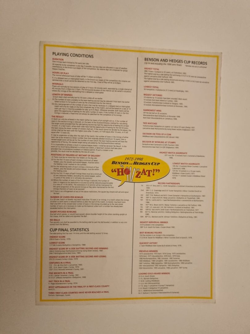 You are purchasing an original Essex v Leicestershire 1998 Benson &Hedges Cricket Cup Final Scorecard