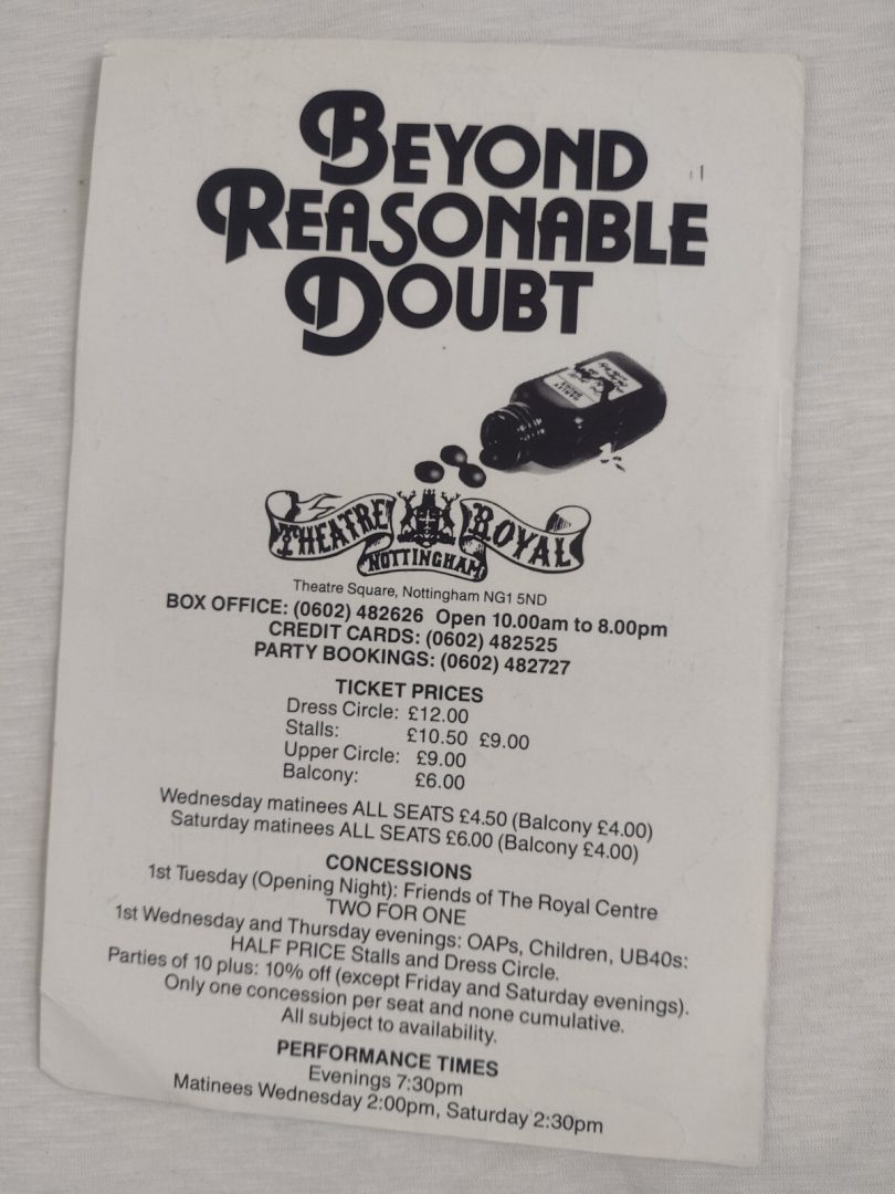 Flyer Beyond Reasonable Doubt Frank Finlay Wendy Craig Andrew Cruickshank D Lang