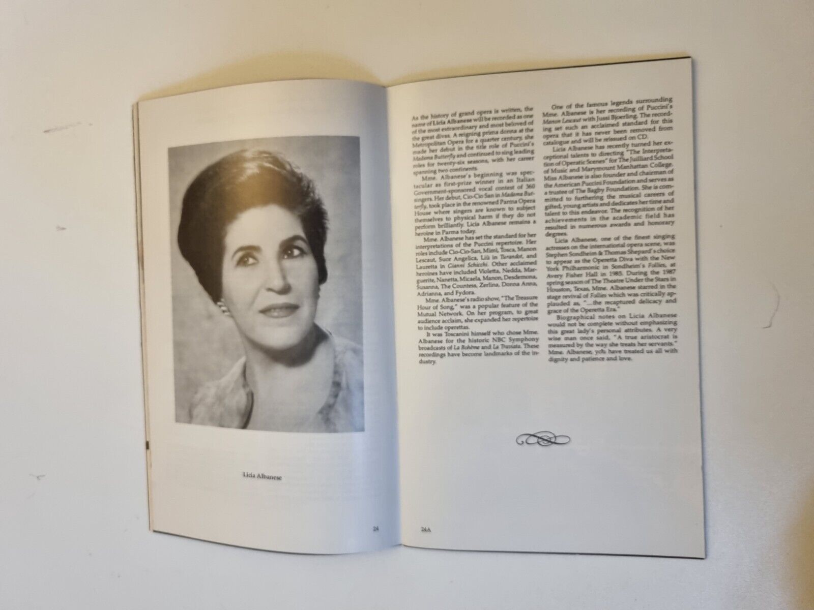 Fourth Annual Showcase Concert 50th Anniversary of Licia Albanese, Soprano