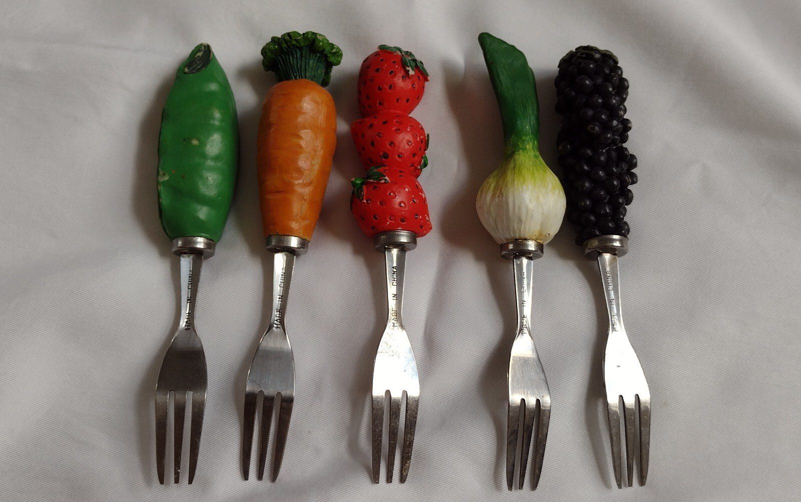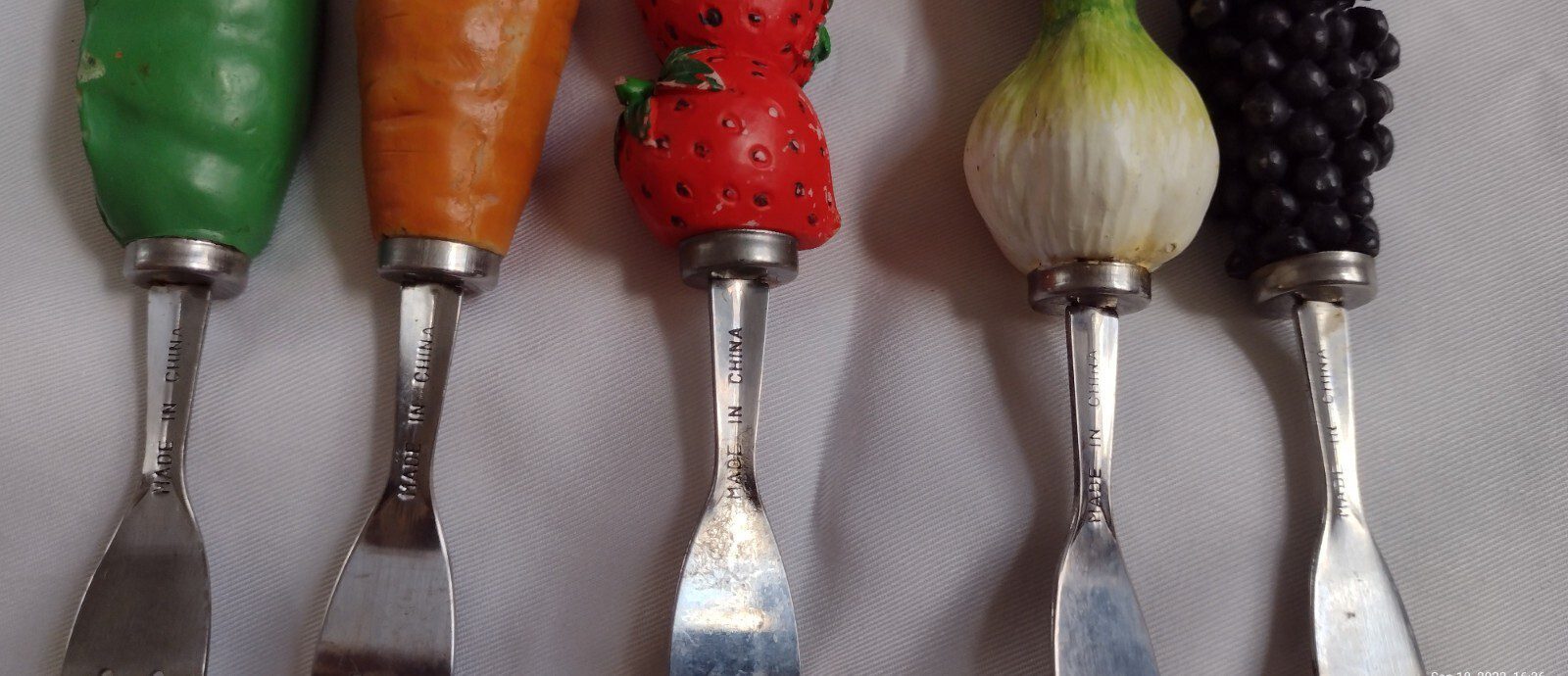 Fruit and Salad Design Fork Spoon made in China marked 130mm 5 pcs Vintage Rare