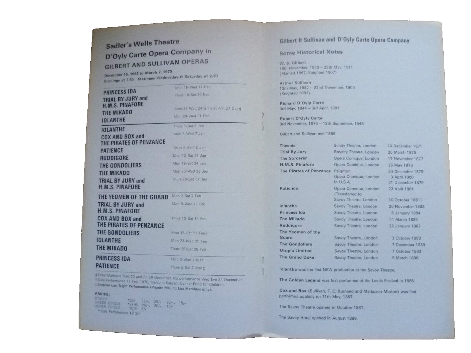 You are purchasing vintage & original programme – Sadlers Wells Theatre : D’Oyly Carte Gilbert & Sullivan Operas 1970 Ruddigore – Kenneth Sanford John Reed Julia Goss