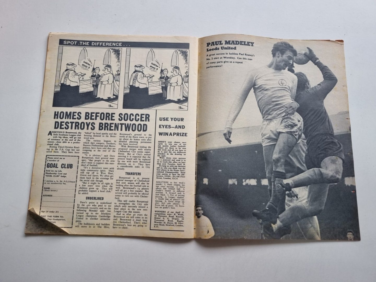 Goal Football Magazine Eddie Gray Leeds, No. 90, 18th April 1970