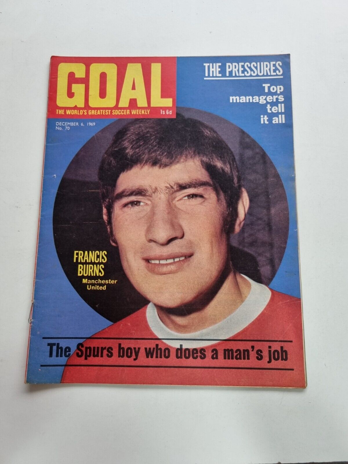 Goal Football Magazine Francis Burns Manchester Utd, No. 70, 6th December 1969