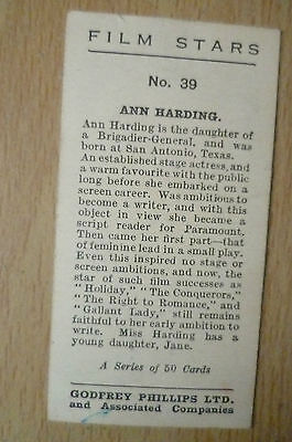 Godfrey Phillips Cigarette Cards- Film Stars, No.39- ANN HARDING