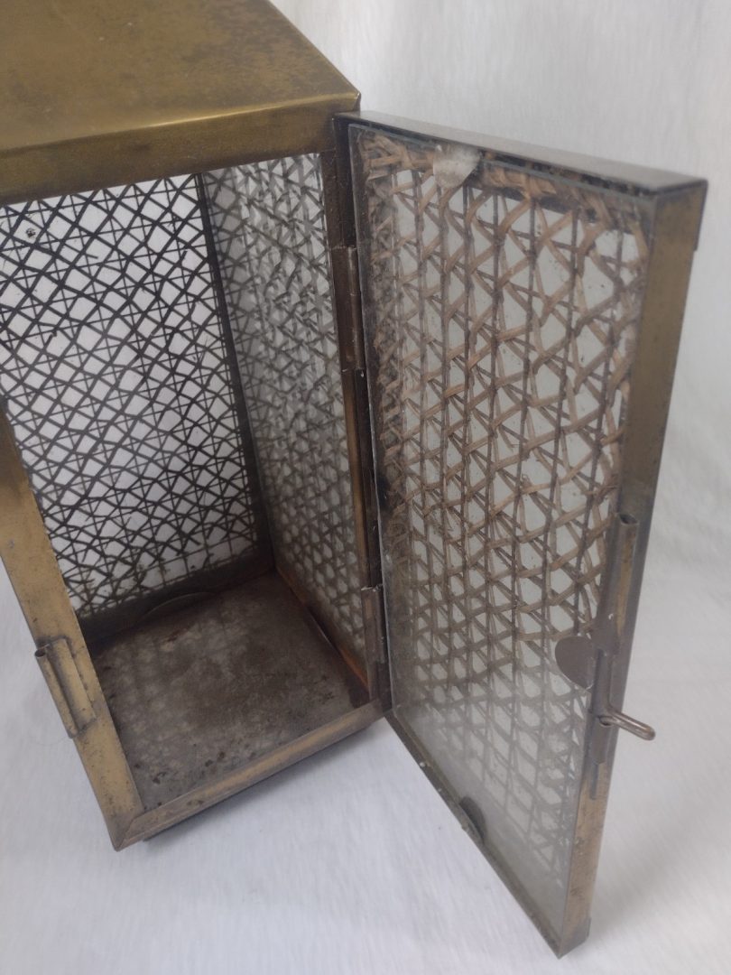 Seller note: Size approximately height with handle 60 cm x Length Dia 76 cm x Width 18 cm. weight 4.2 kg..... I believe this to be an Original item, in very good condition but showing genuine signs of age....item made with Brass, Clear Glass and the cross the fence that cover the glass made with wood and iron metal, the fence iron metal become rusty for its age....Please study pictures carefully to decide. Incredible detail on the item.