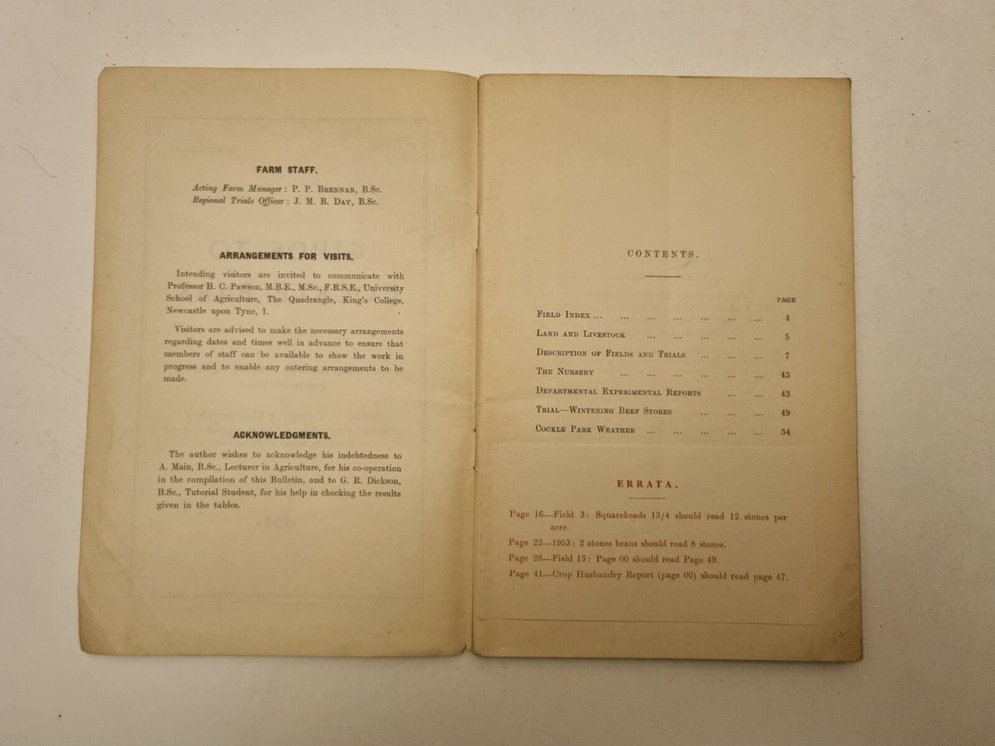 Guide To Cockle Park Kings College University of Durham Agricultural Experiment