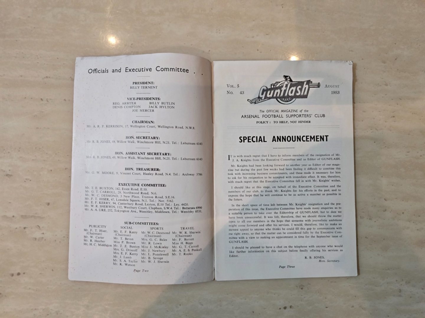 Gunflash – Arsenal Football Supporters Club Magazine Vol 5 No 43, August 1953