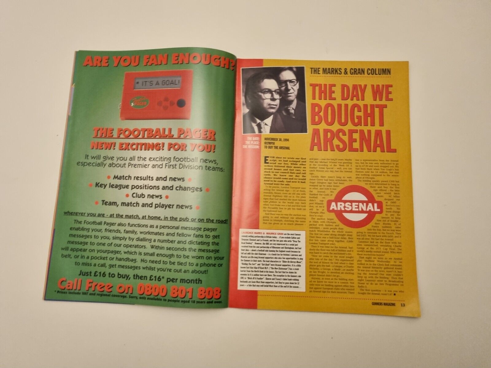 "This Original Gunners Arsenal official Magazine, it remains in very good condition for its age. Please see the pictures as it forms part of the descriptions."