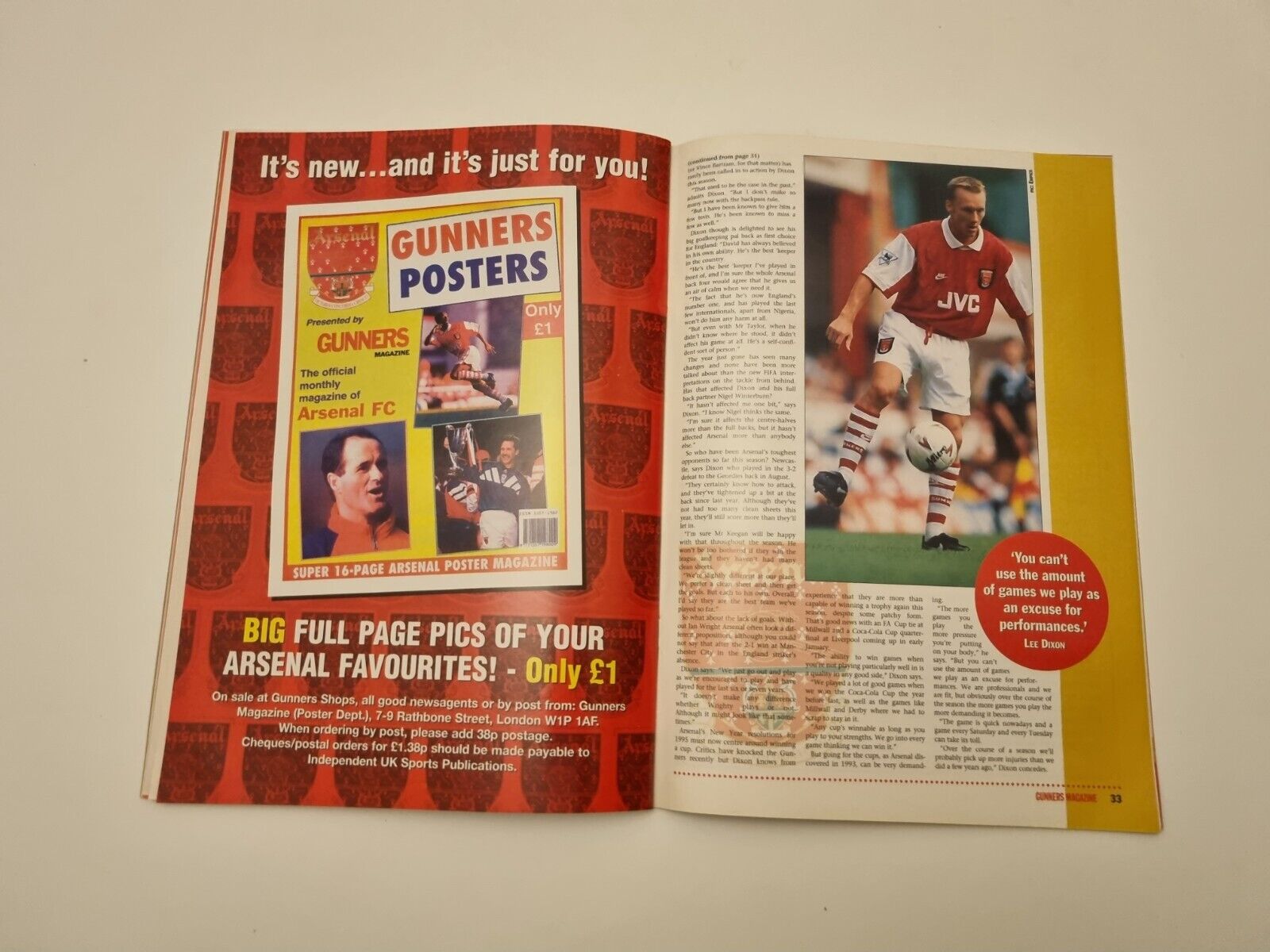 Gunners Arsenal Magazine Vol 1 No. 5 Tony Adams & Alan Smith – January 1995