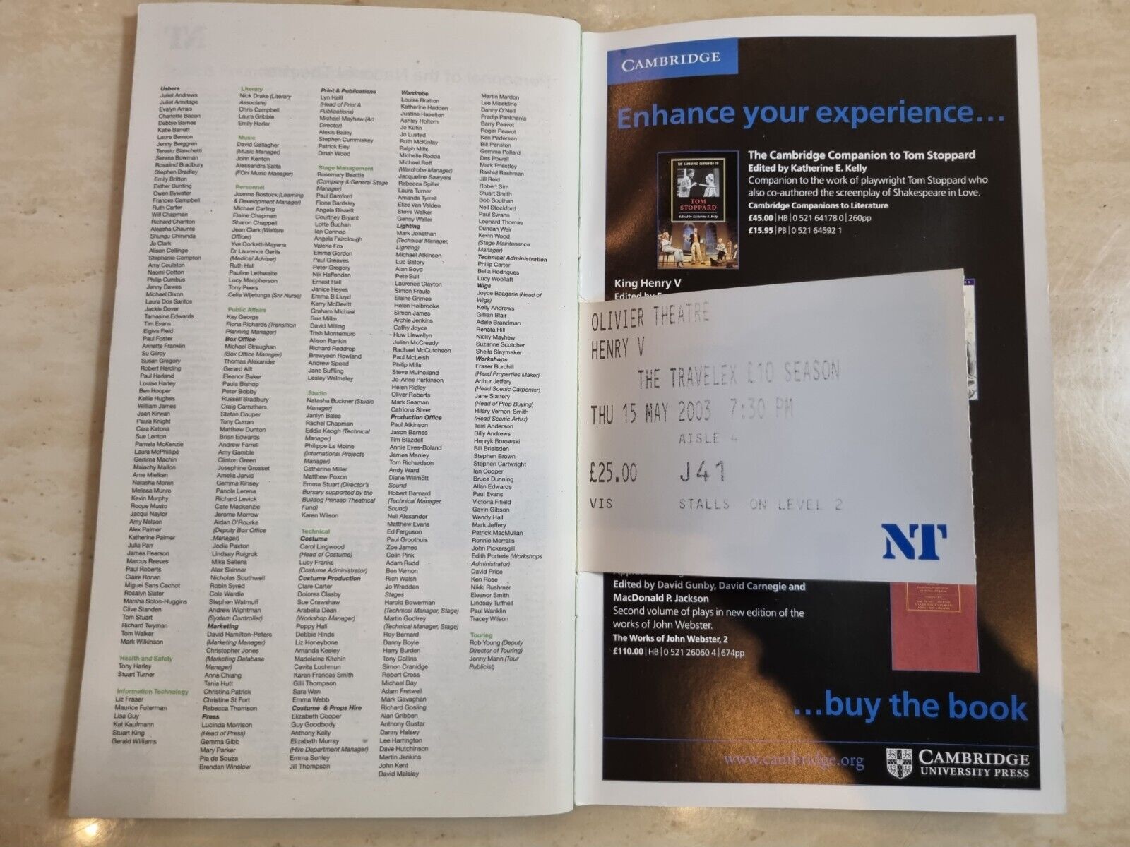 I am selling a special collection of theatre/film programme, tickets & other Memorabilia. Check out my other items! This is a wonderful, interesting and collectable item for any theatre/film enthusiasts.