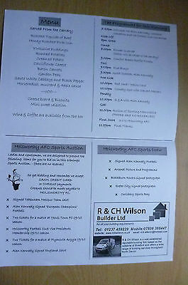 You are purchasing an original HOLSWORTHY AFC SPORTSMAN’S DINNER MENU: with ALAN KENNEDY, 24/10/2009