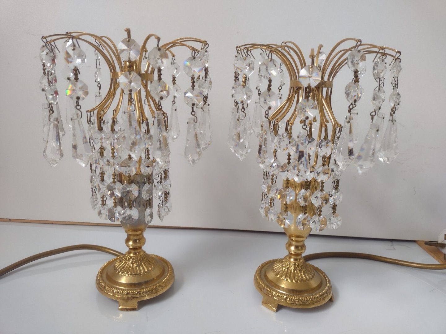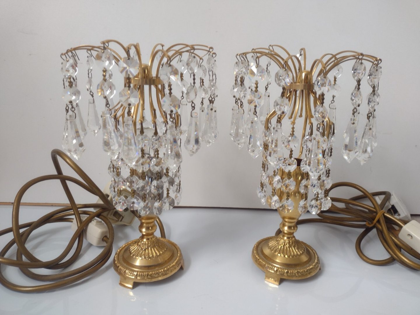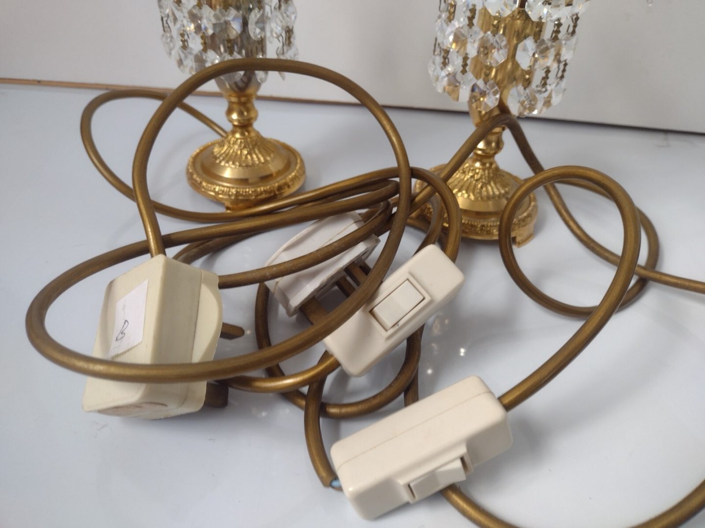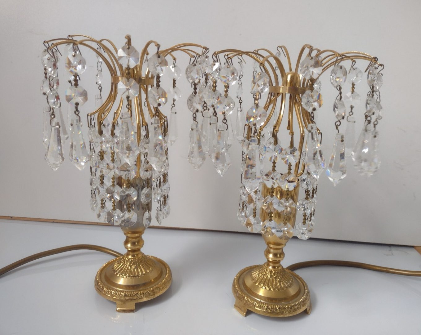 Italian Crystal Glass Drop Chandelier Style Table Lamp Brass Finish 23cm Pair