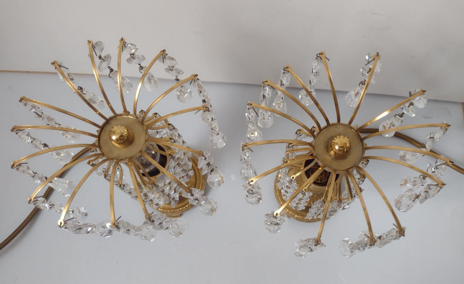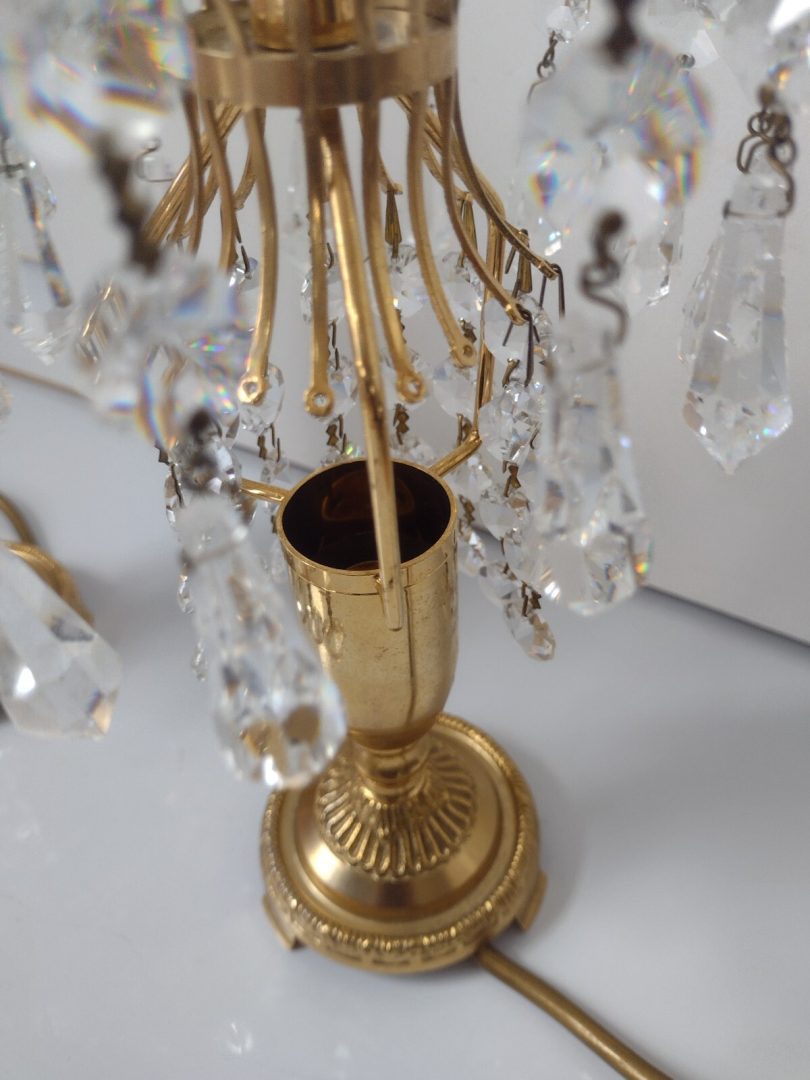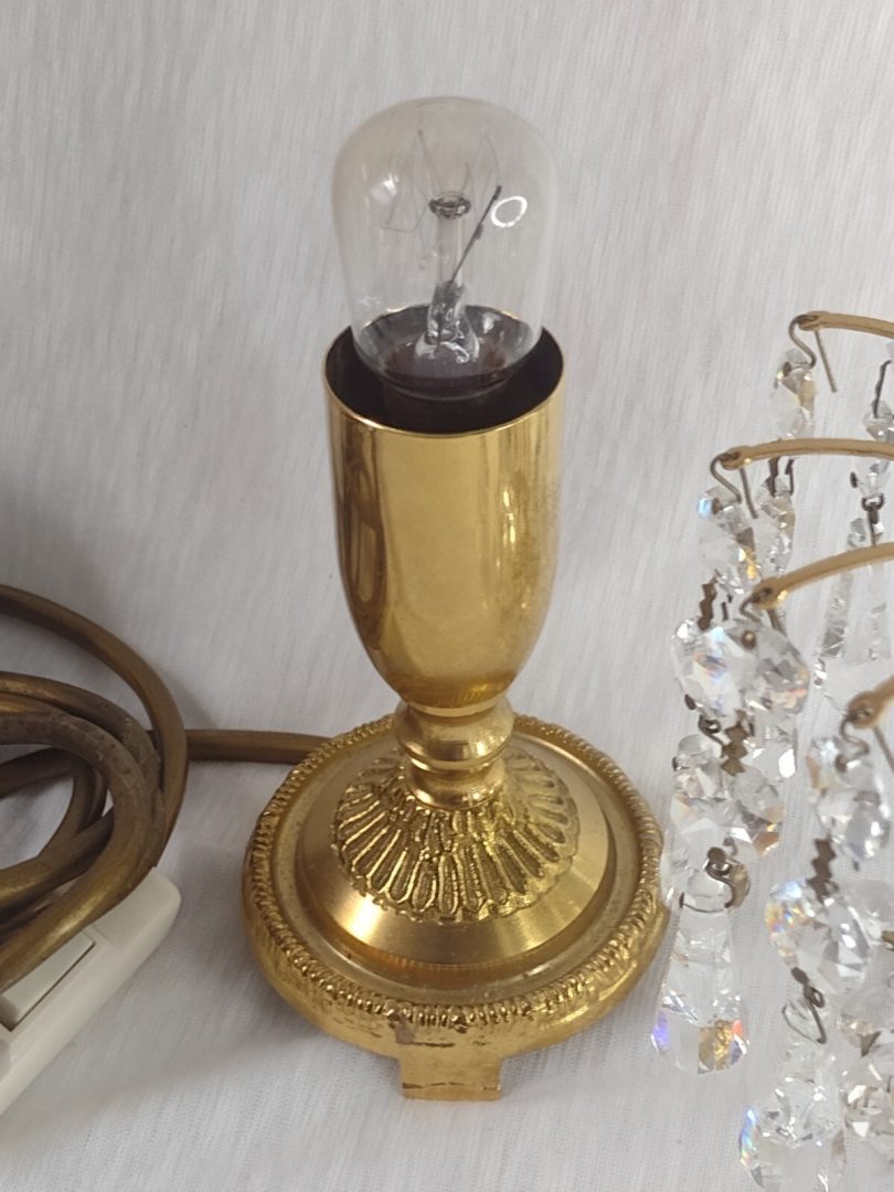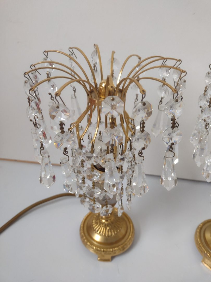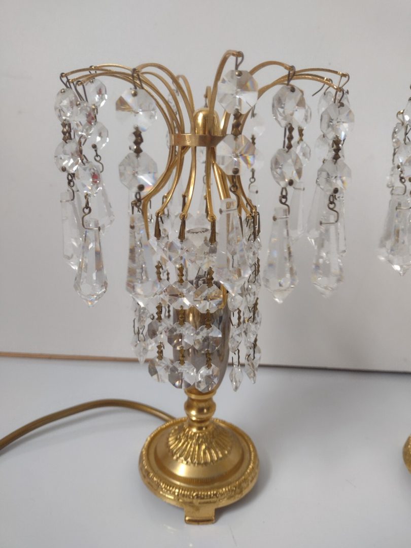 Italian Crystal Glass Drop Chandelier Style Table Lamp Brass Finish 23cm Pair