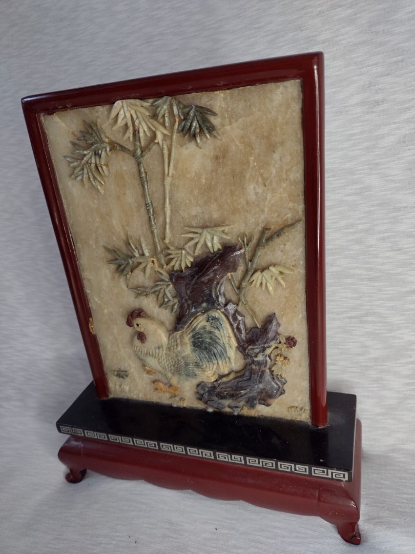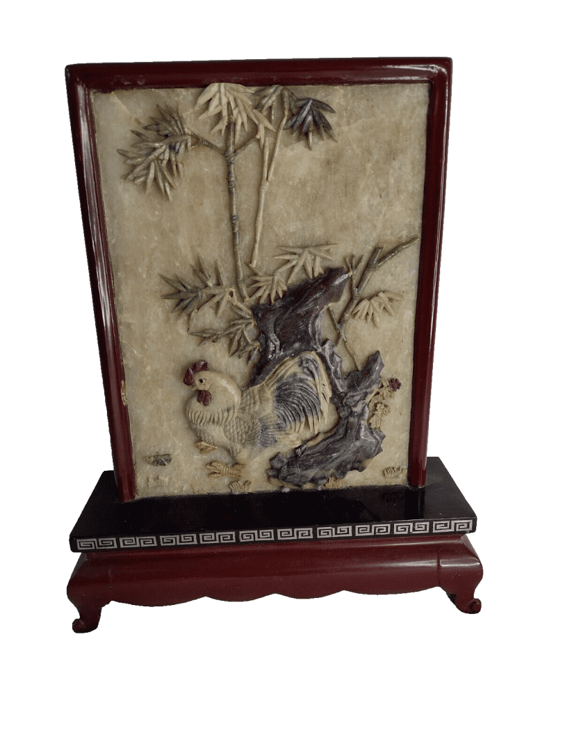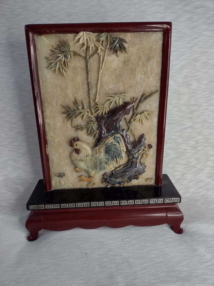 Be the first to review “Japanese Carved Soapstone Sculpture Cock Plaque 3D on Wood Stand 28cm Vintage” Cancel reply