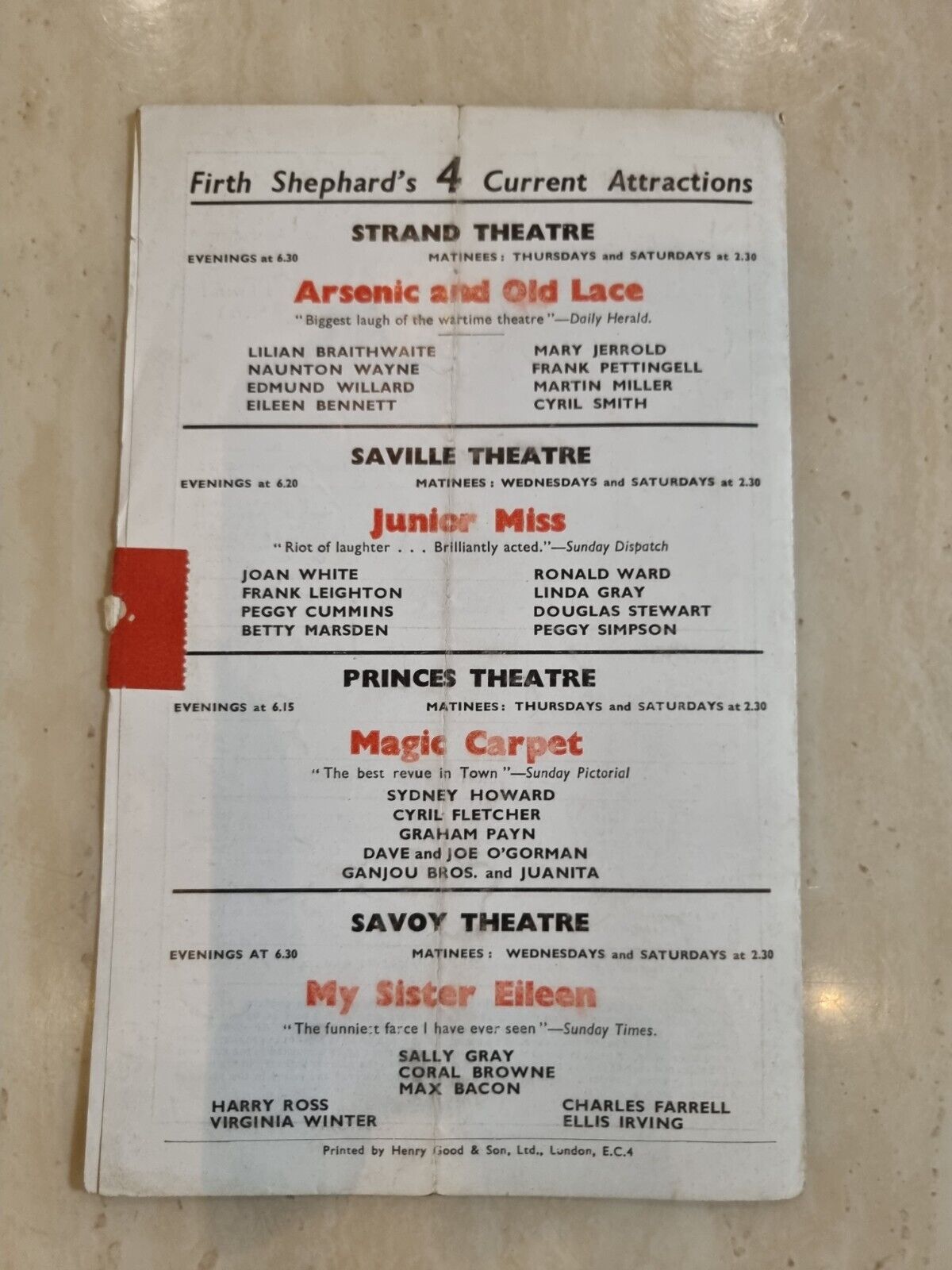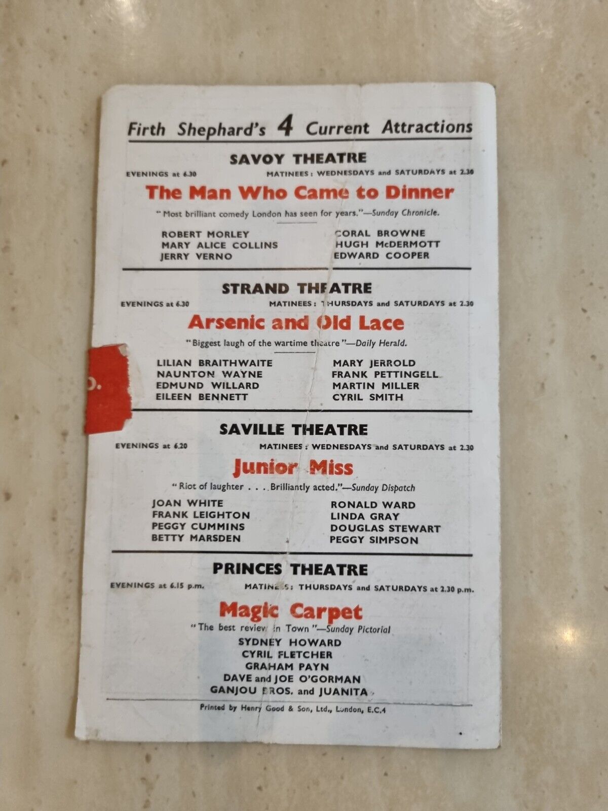 I am selling a special collection of theatre/film programme, tickets & other Memorabilia. Check out my other items! This is a wonderful, interesting and collectable item for any theatre/film enthusiasts.