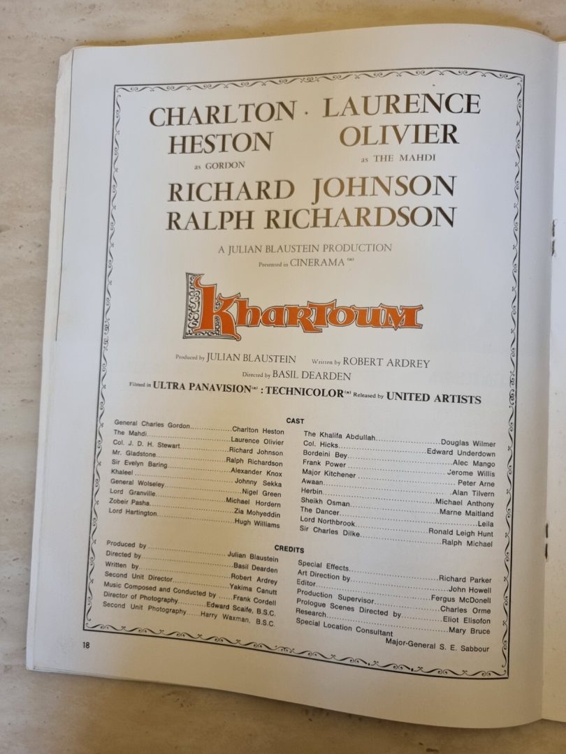 Khartoum Charlton Heston Laurence Olivier Richard Johnson Cinema Programme 1966