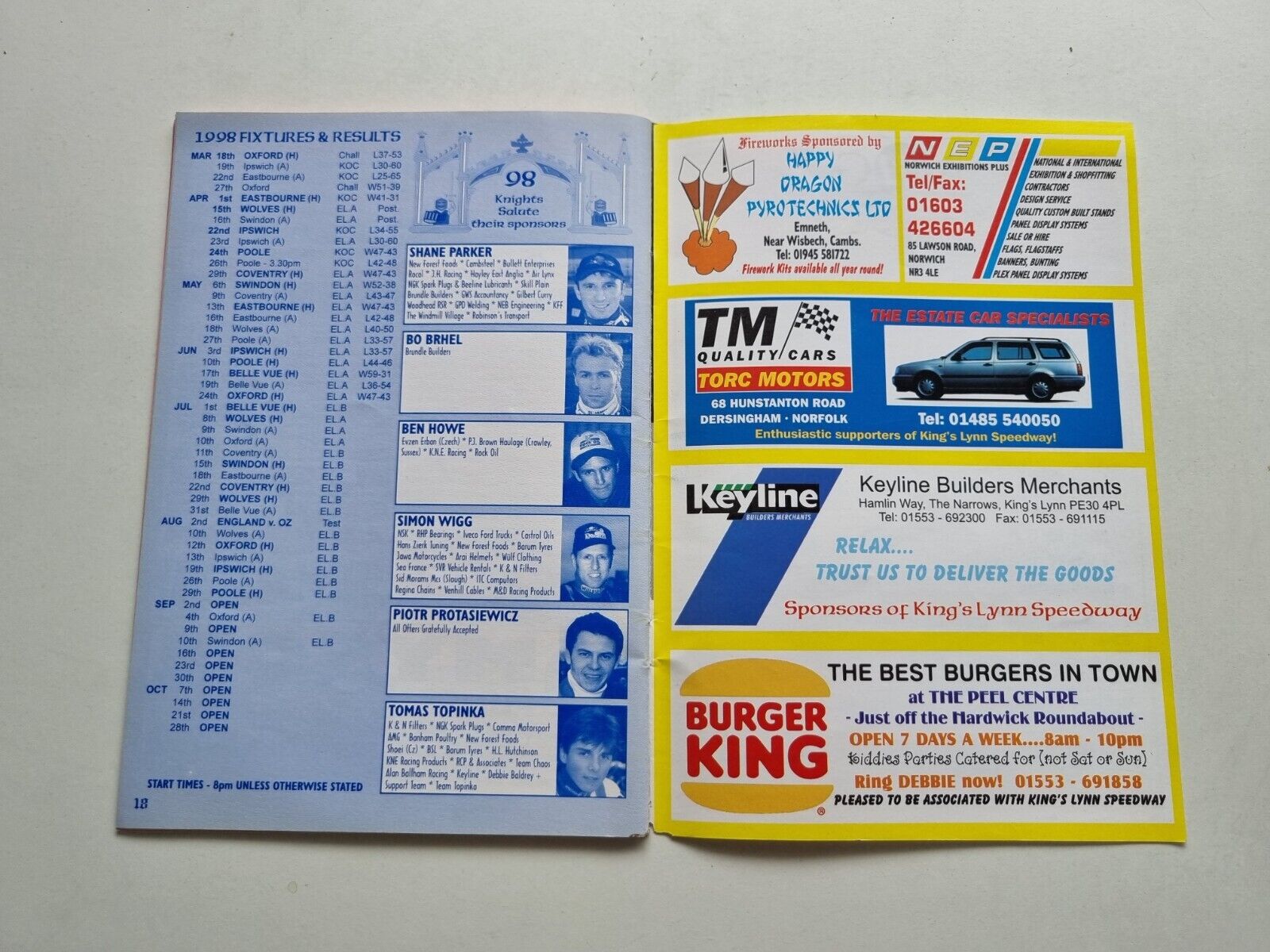 Kings Lynn Knights v Belle Vue Sanderson Ford/Piccadilly 1152AM Aces 01/07/1998