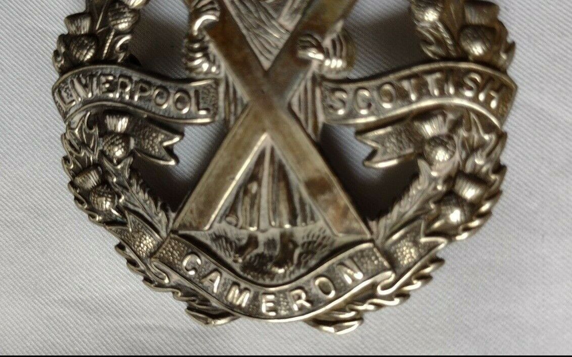 Liverpool Scottish Cameron Highlanders Cap Badge WM 2 Lugs 55mm Antique Original