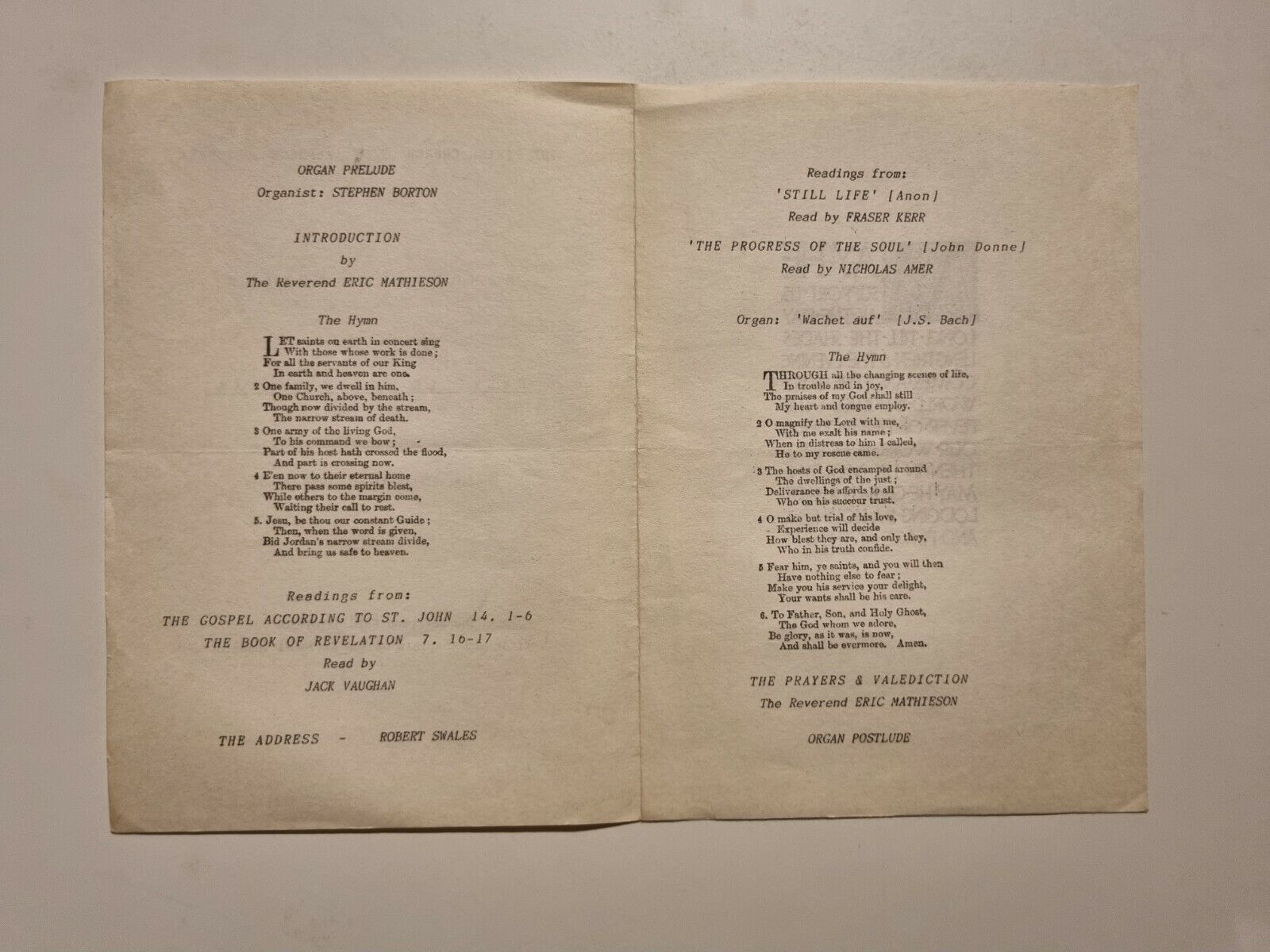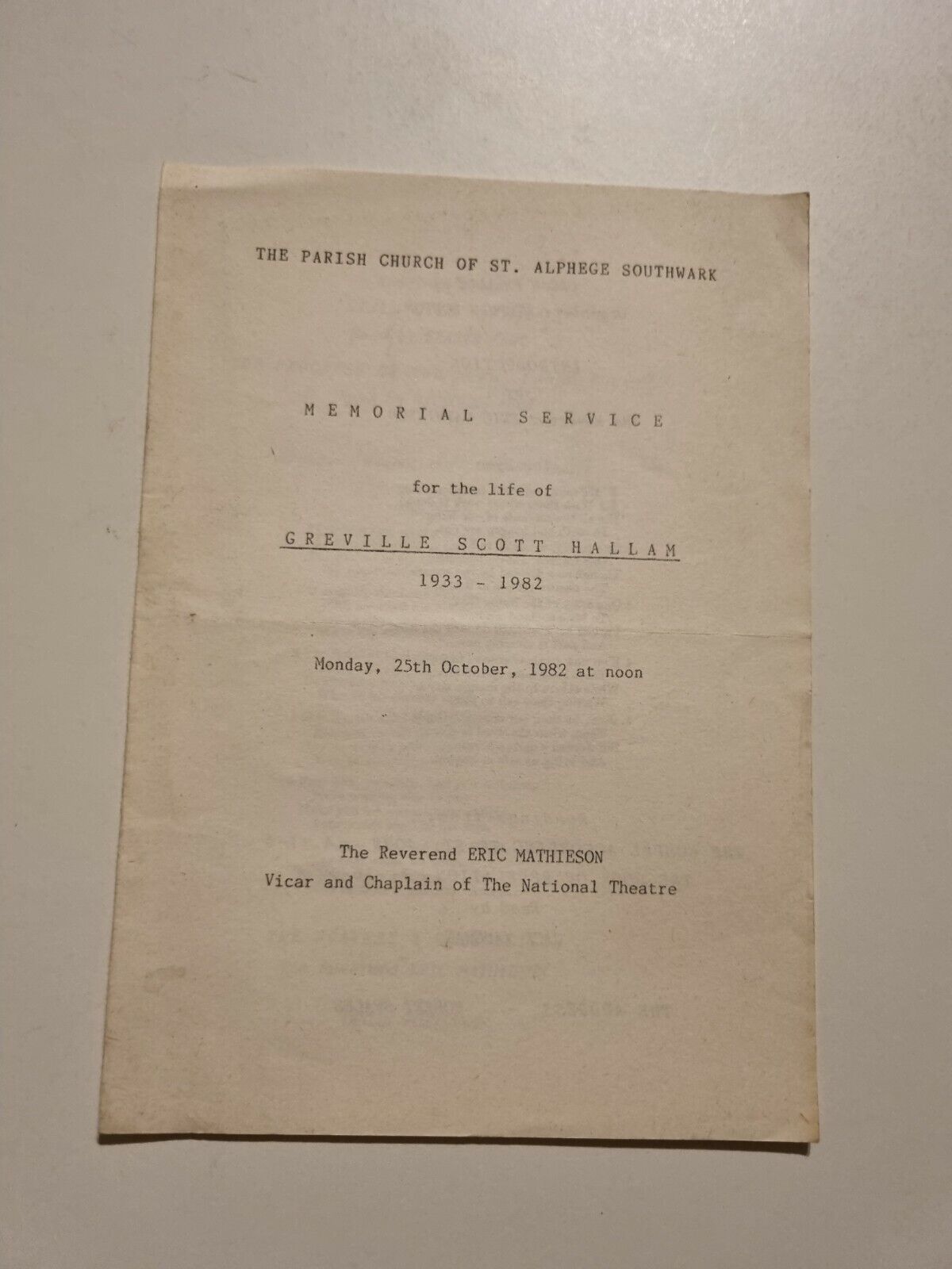 MEMORIAL SERVICE FOR THE LIFE OF GREVILLE SCOTT HALLAM