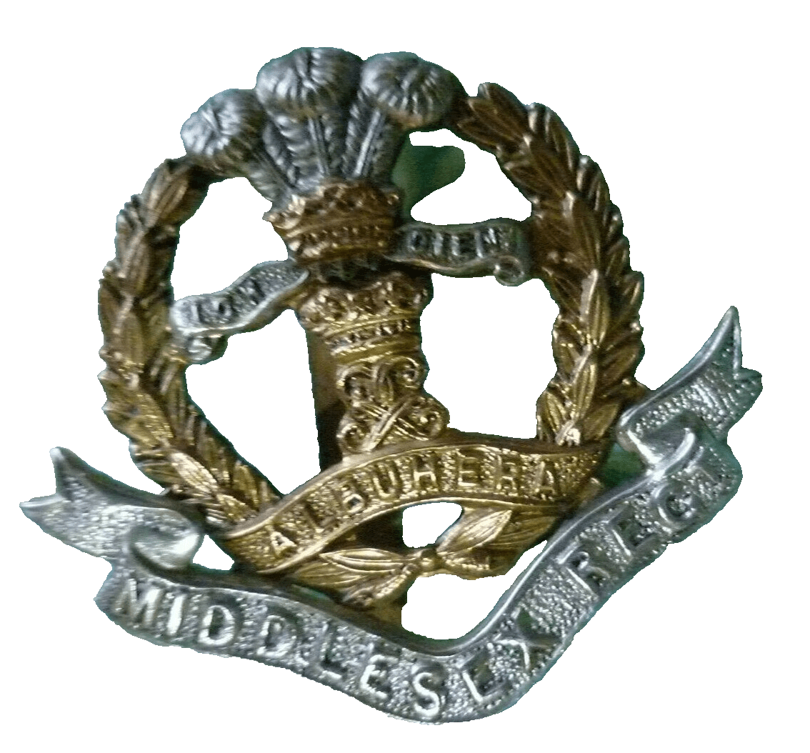 Middlesex Regiment Cap Badge Bi-Metal Slider WW1 Antique Original