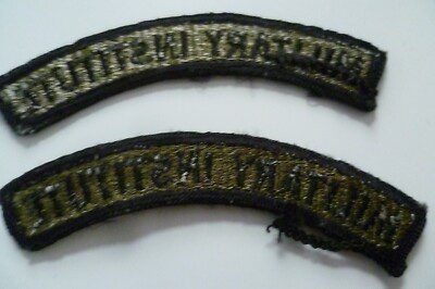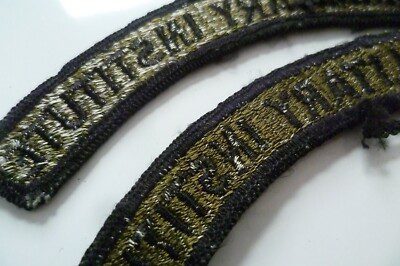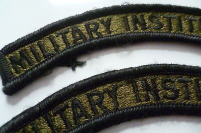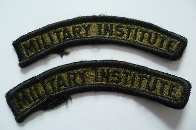 Military Institute Shoulder Title Cloth Badge Black on Olive 16x103mm Used- PAIR