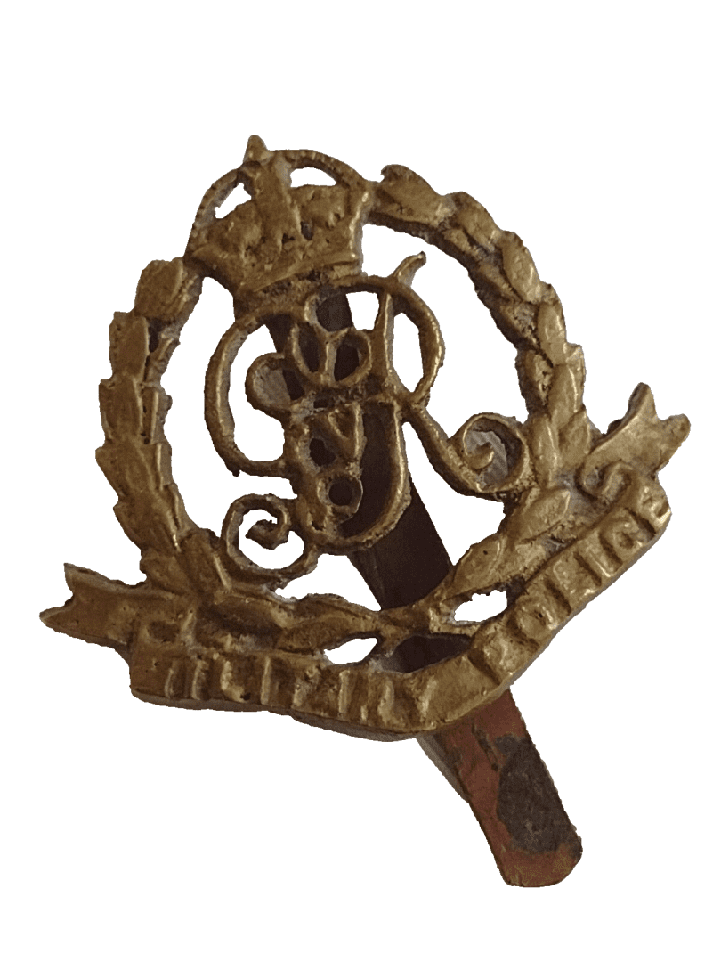 Military Police Cap Badge KC GRV Cast Brass Slider 40mm Vintage