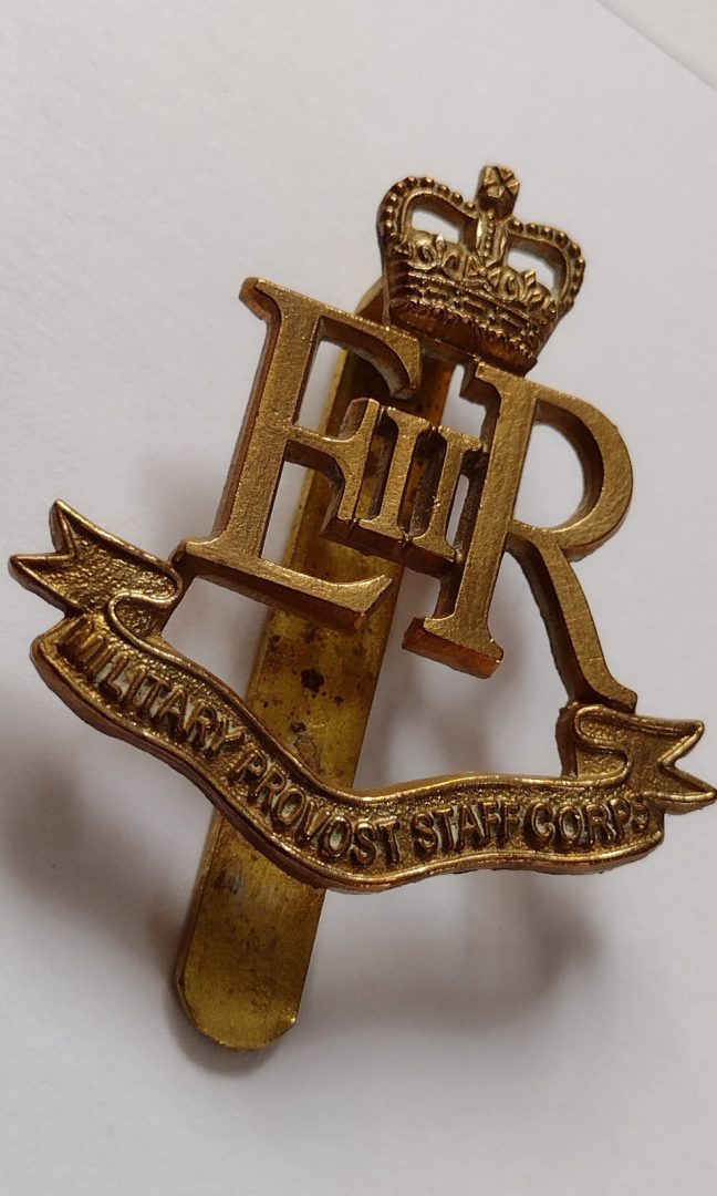 Military Provost Staff Corps Cap Badge QC EIIR Issued All Brass 40mm Vintage Org