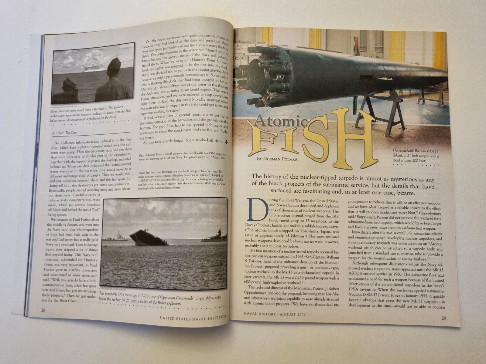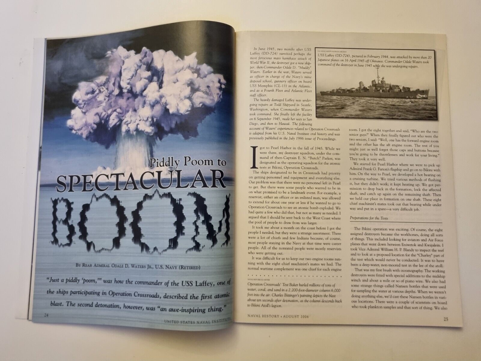Naval History Magazine 60 Anniversary Bikini Atomic Bomb Blasts 2006 Vol 20 No.4