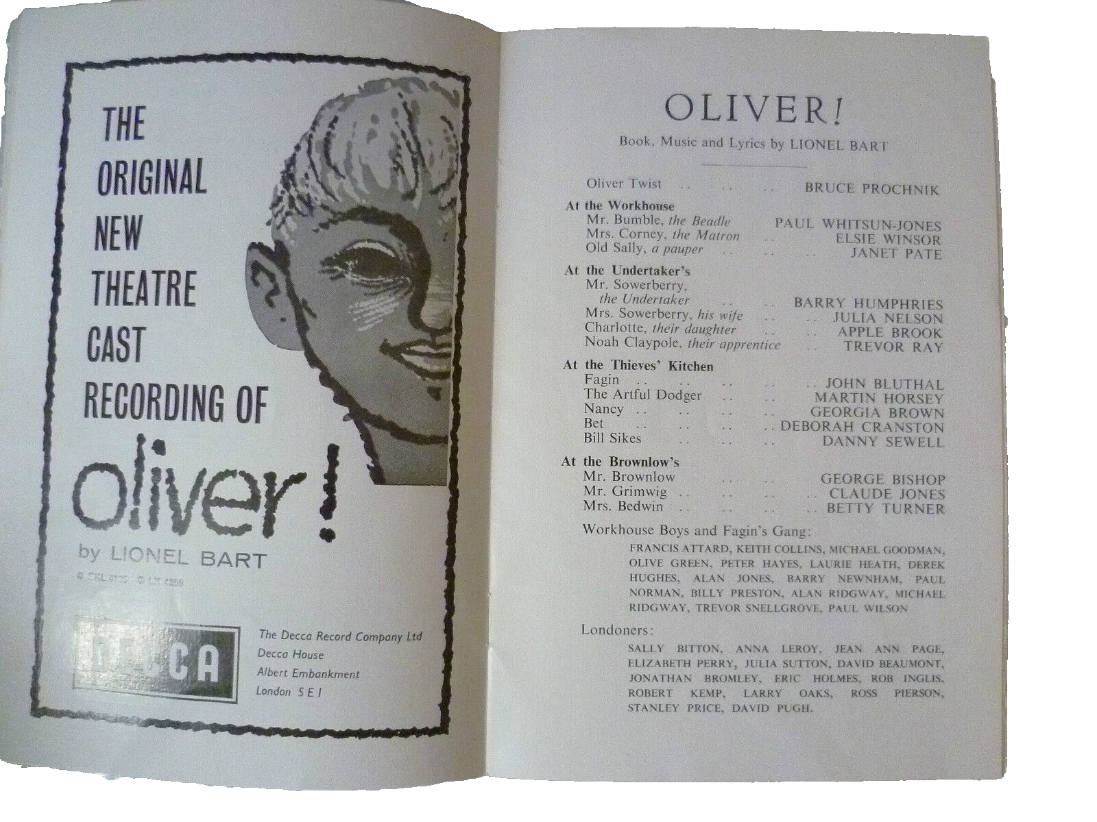 You are purchasing very collectable & Original Programme. New Theatre Programme Oliver- Bruce Prochnik John Bluthal Georgia Brown.