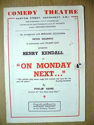 You are purchasing vintage & original Programme of : Comedy Theatre Programme 1949- Henry Kendall in ON MONDAY NEXT…by Philip King